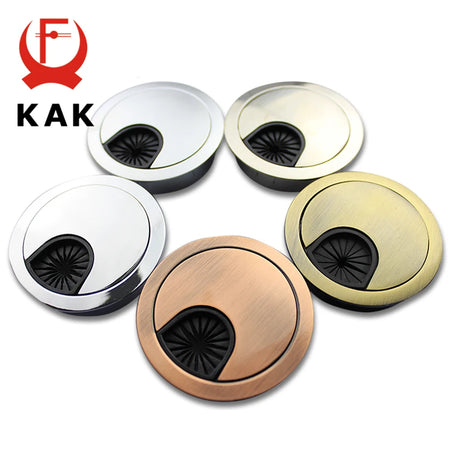 Transform desk clutter into clean efficiency with the KAK Zinc Alloy Desk Wire Hole Cover Grommet Cable Outlet. Crafted from durable zinc alloy and finished with electroplating, this grommet provides a sleek, secure channel for your computer and device cables. It fits standard desk openings with a 24mm cable hole and offers four round cover sizes (50mm, 53mm, 60mm, 80mm) to accommodate different cable configurations. With multiple finishes—Black, Red Bronze, Green Bronze, Brushed Silver, Pearl Chrome, Bright Chrome—it blends with a range of decors. Model KAK7136, manufactured in Mainland China.