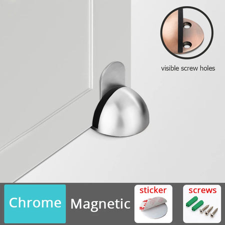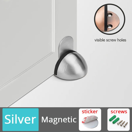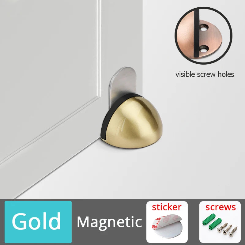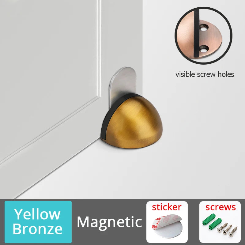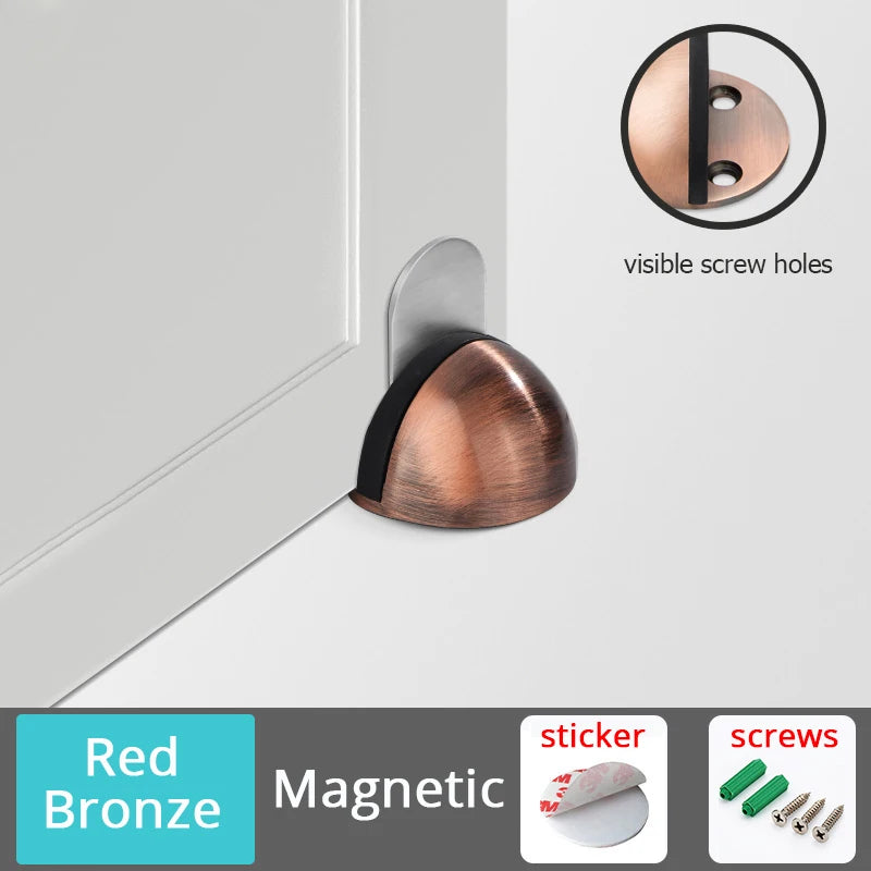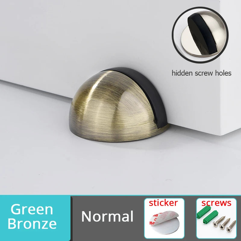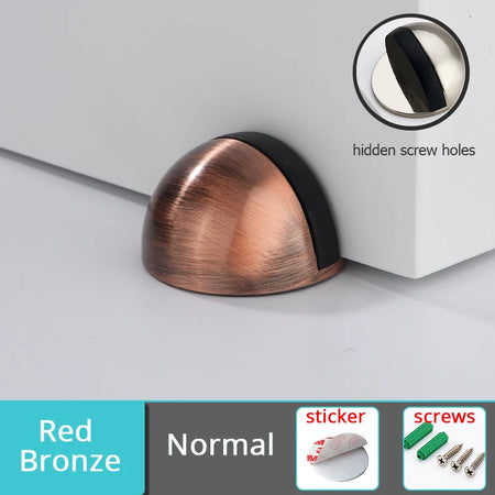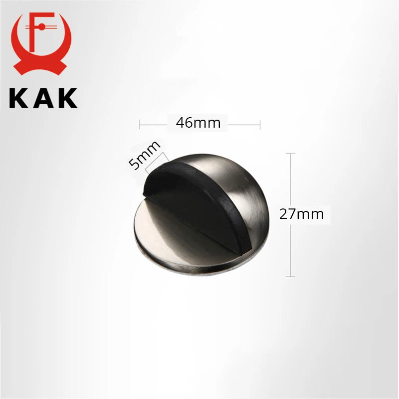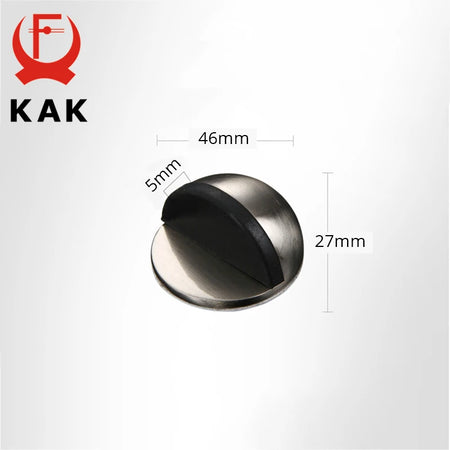 Meet the Kak Zinc Alloy Rubber Door Stopper Nail Free Floor Mounted, a reliable, stylish solution designed to protect walls and prevent doors from slamming. Available in two practical variants: XD05 Rubber Door Stopper (no magnetic) and DS-16 Magnetic Door Stopper. Crafted from durable zinc alloy with a 5mm-thick rubber bumper, it delivers quiet, effective stopping power for busy homes and offices. Install quickly with screws for a permanent fix or with nail-free stickers for a clean, drill-free setup. Choose from Silver, Red Bronze, Green Bronze, Black, or Gold to match your space. The base diameter is 46mm and the height is 27mm, providing stable, unobtrusive support. Rubber version features hidden screw holes for a clean look, while the magnetic version shows visible screw holes for a strong hold. It helps prevent door damage from drafts or kids' play and keeps walls and trim protected.