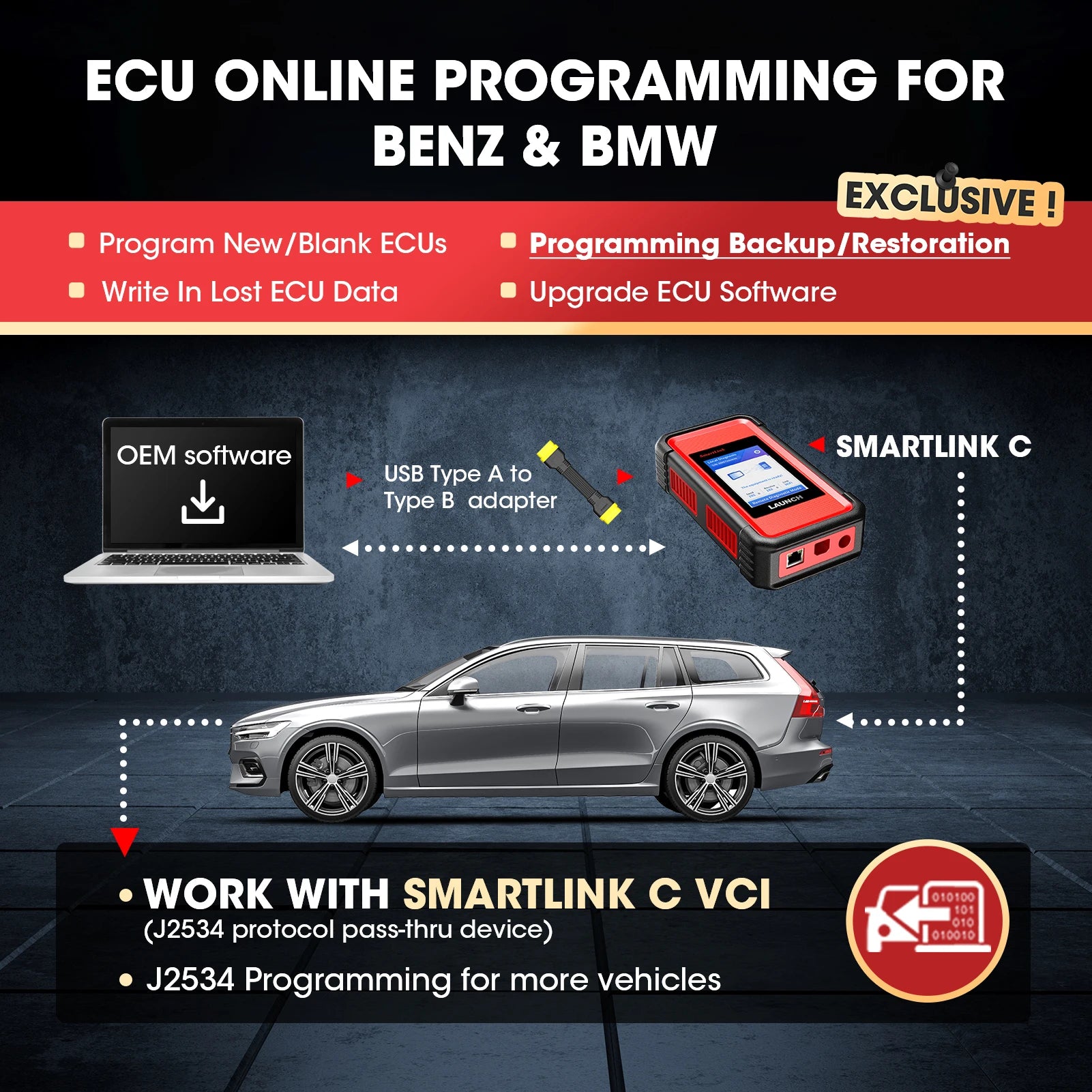 • Run OEM-level ECU programming with SmartLink C (J2534) to replace, refresh, or write-in data for ECUs without using OEM tools.