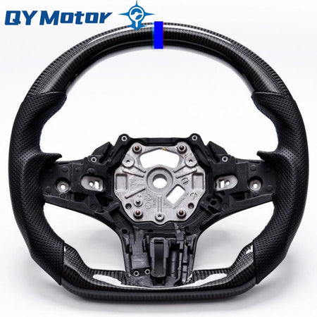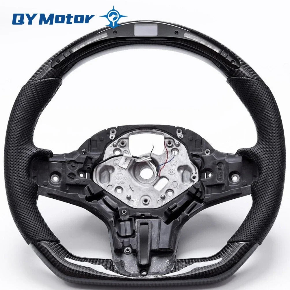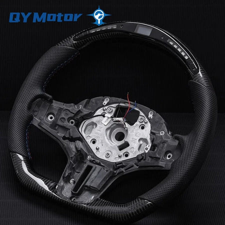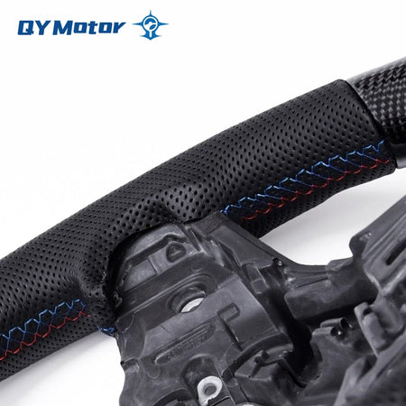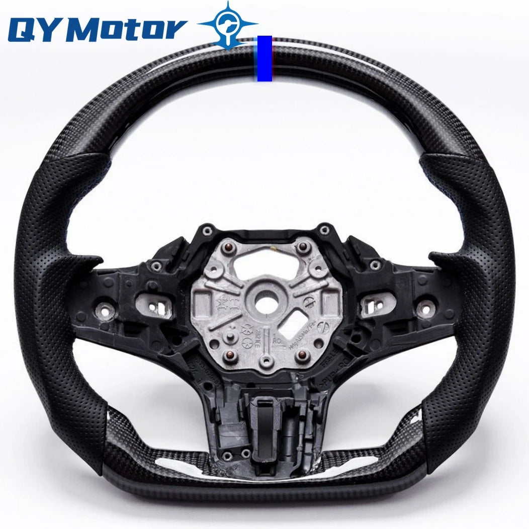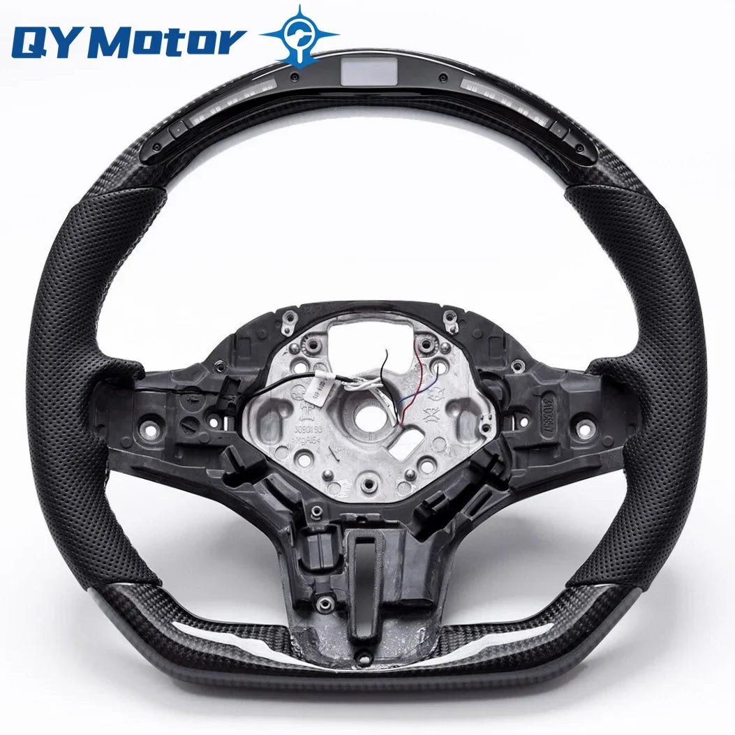 Upgrade your BMW interior with the BMW LED Carbon Fiber Steering Wheel for G30 and G20 models. Crafted from real carbon fiber with perforated leather, this wheel brings a premium, race-inspired feel to daily driving. The flat bottom D-type design and M stitching deliver a bold, sporty look while enhancing grip and control for sharper handling. A built-in LED Shift Indicator Race Display keeps essential gear and performance data in view, helping you stay focused on the road. Designed to fit a wide range of BMW configurations, this wheel is a true performance upgrade that blends luxury with functionality. Please note this is a customized product with a typical 15-day production time, though stock availability may allow for immediate shipping. It ships without the airbag, and for compatibility confirmation you’re welcome to send a photo of your original steering wheel.