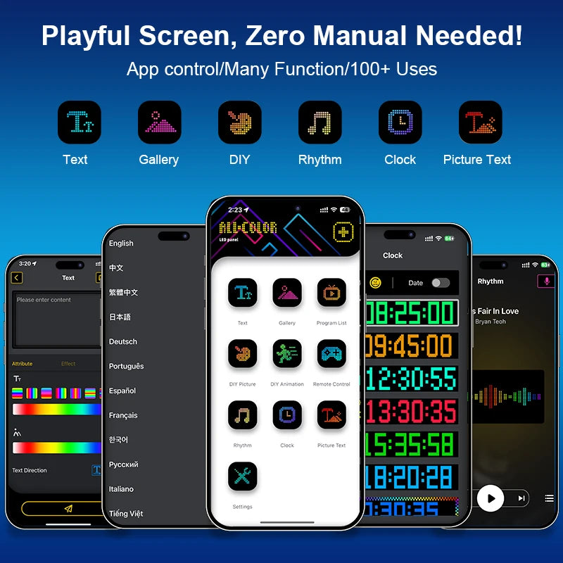 - Bluetooth APP Control (CoolLED1248 / iPixel color) lets you edit text, design patterns, adjust brightness, and sync with music rhythms for events, shops, bars, and festivals.