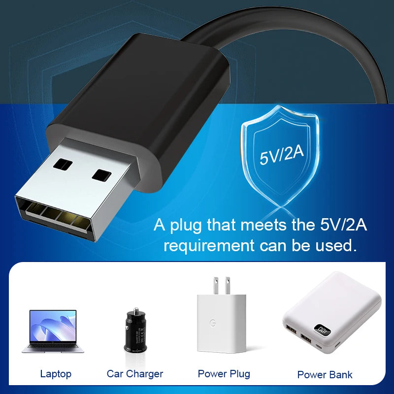 - USB-powered, low heat, and safe to touch. Power from a power bank, laptop, or car charger (5V, 2A minimum) for flexible use on the go.