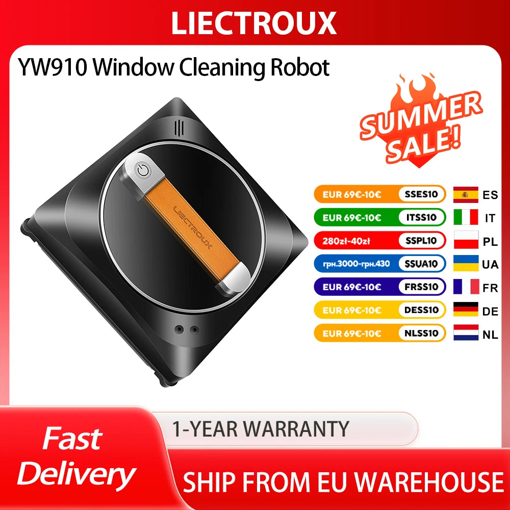 Liectroux YW910 Window Cleaning Robot With Laser Sensor, 3000Pa Suction, Double Water Spray, App and Remote Control