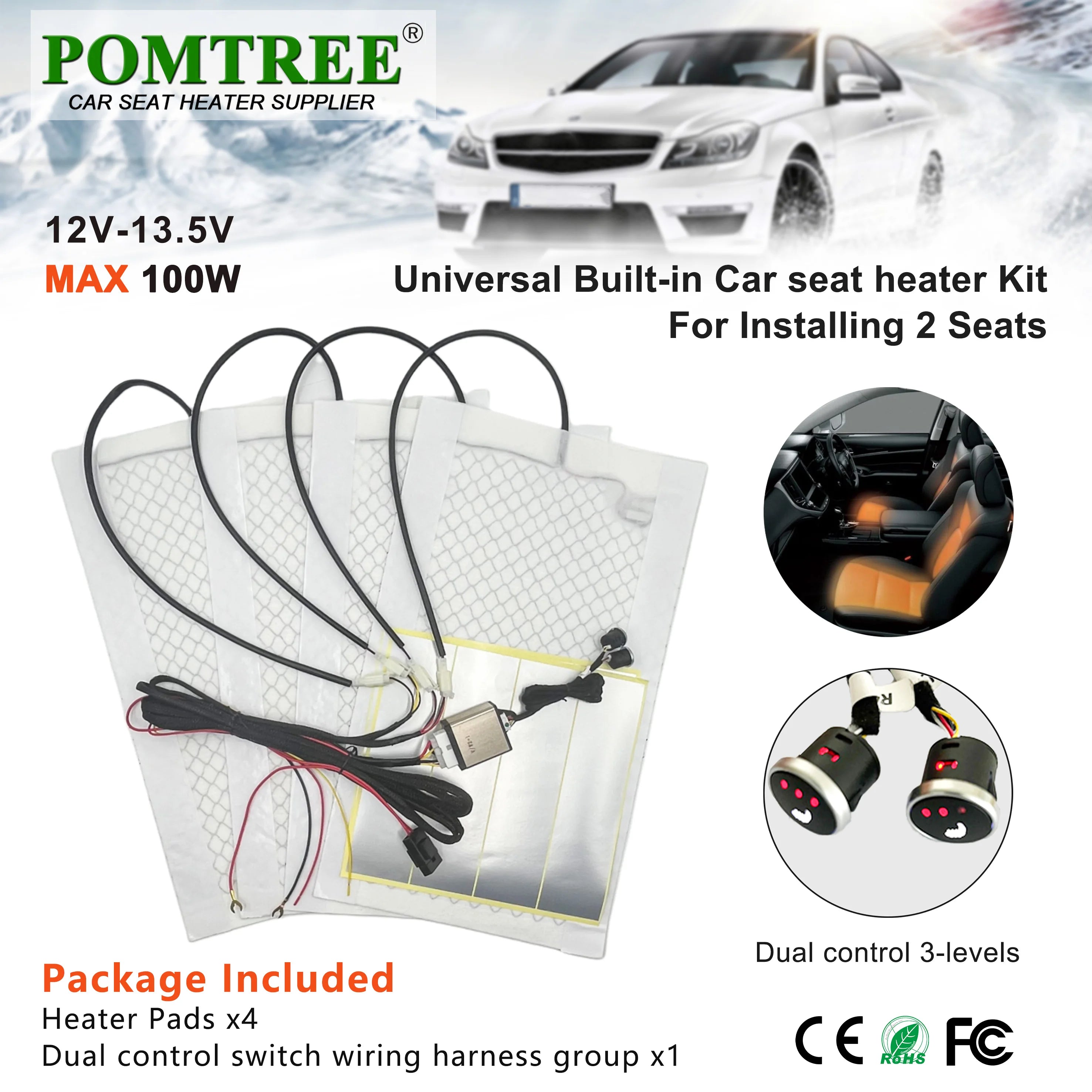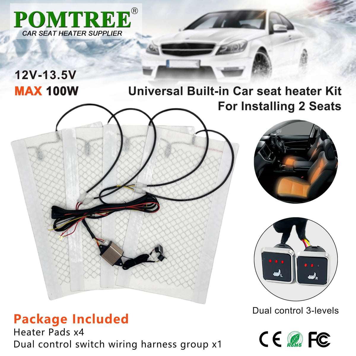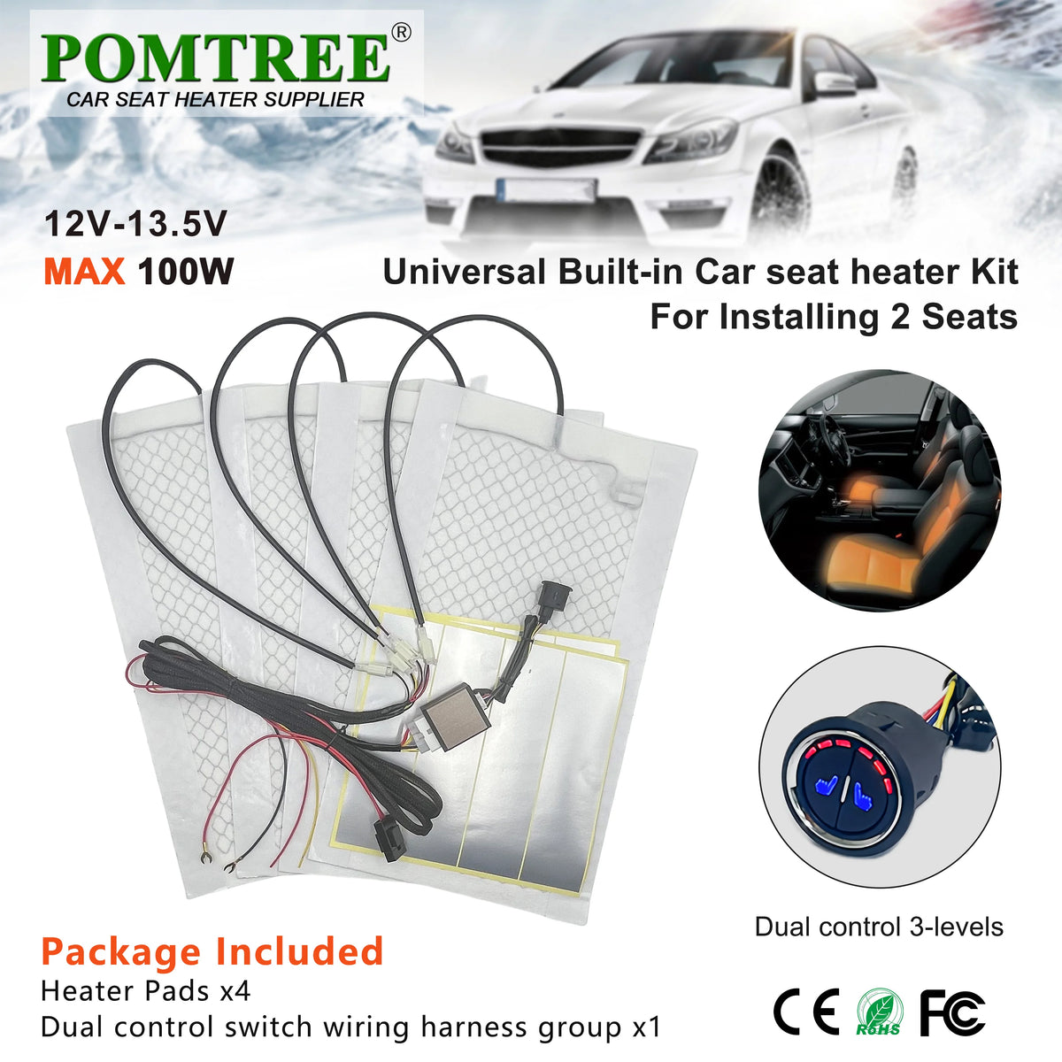 Car Seat Heater Kit 100W for 2 Seats, 4 Carbon Fiber Heating Pads