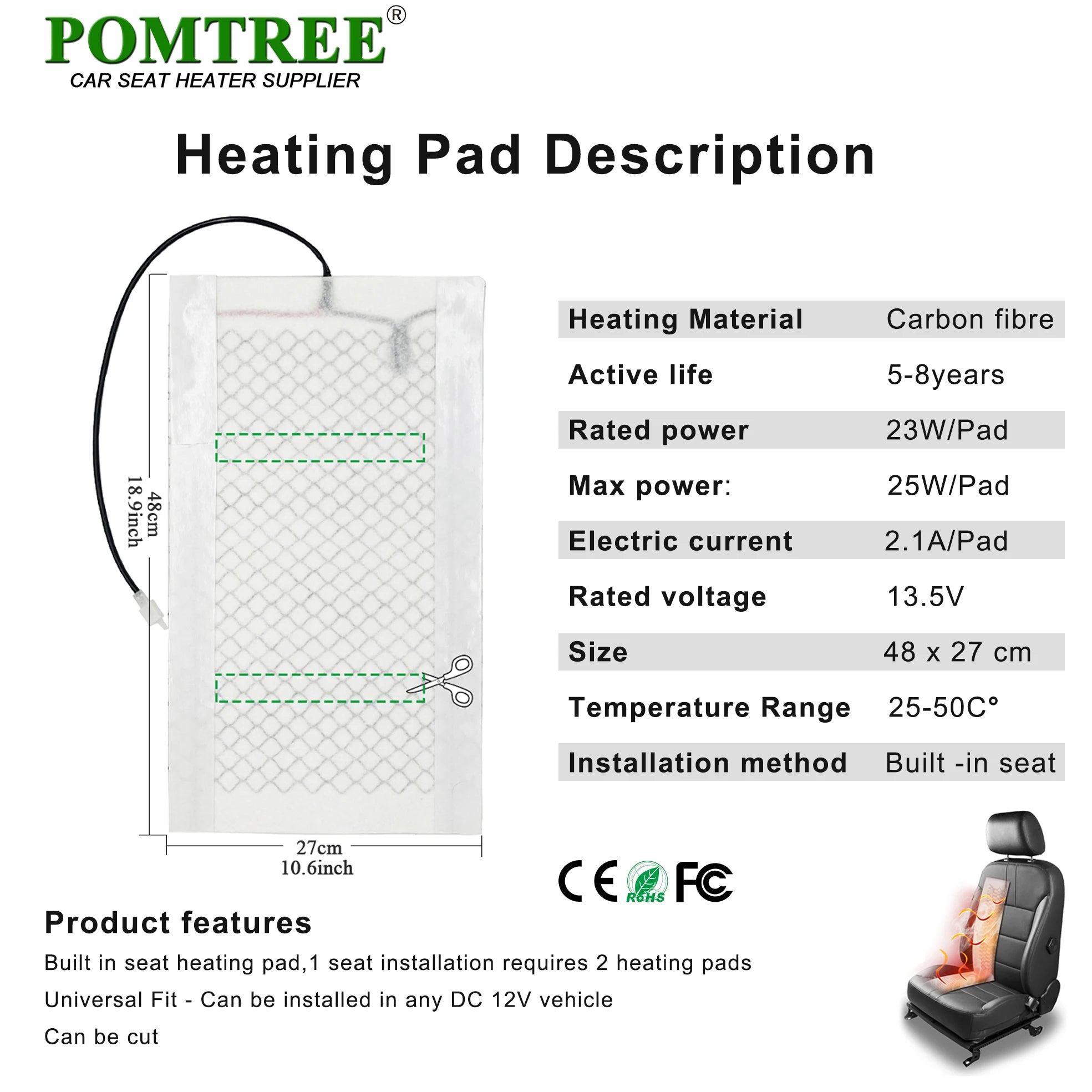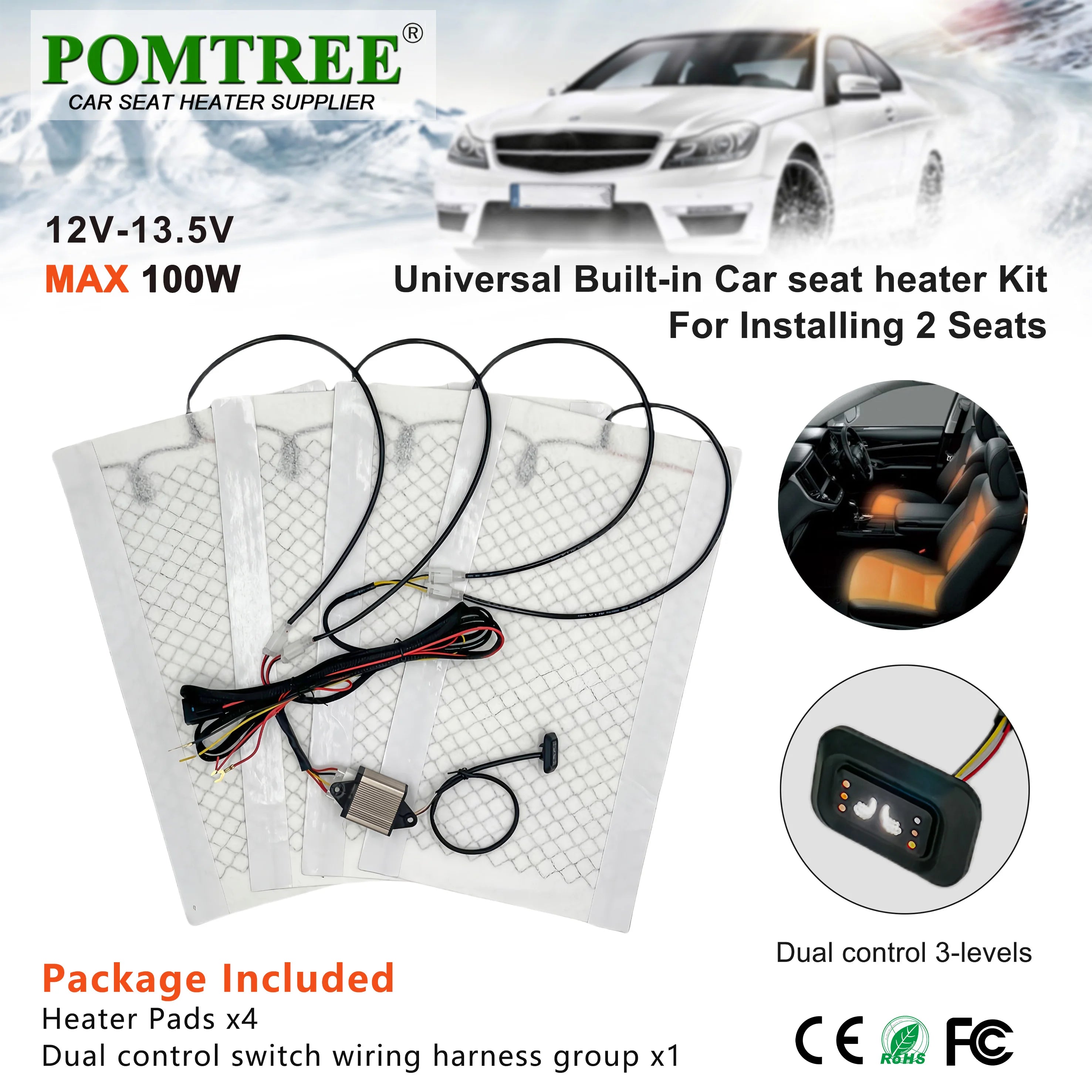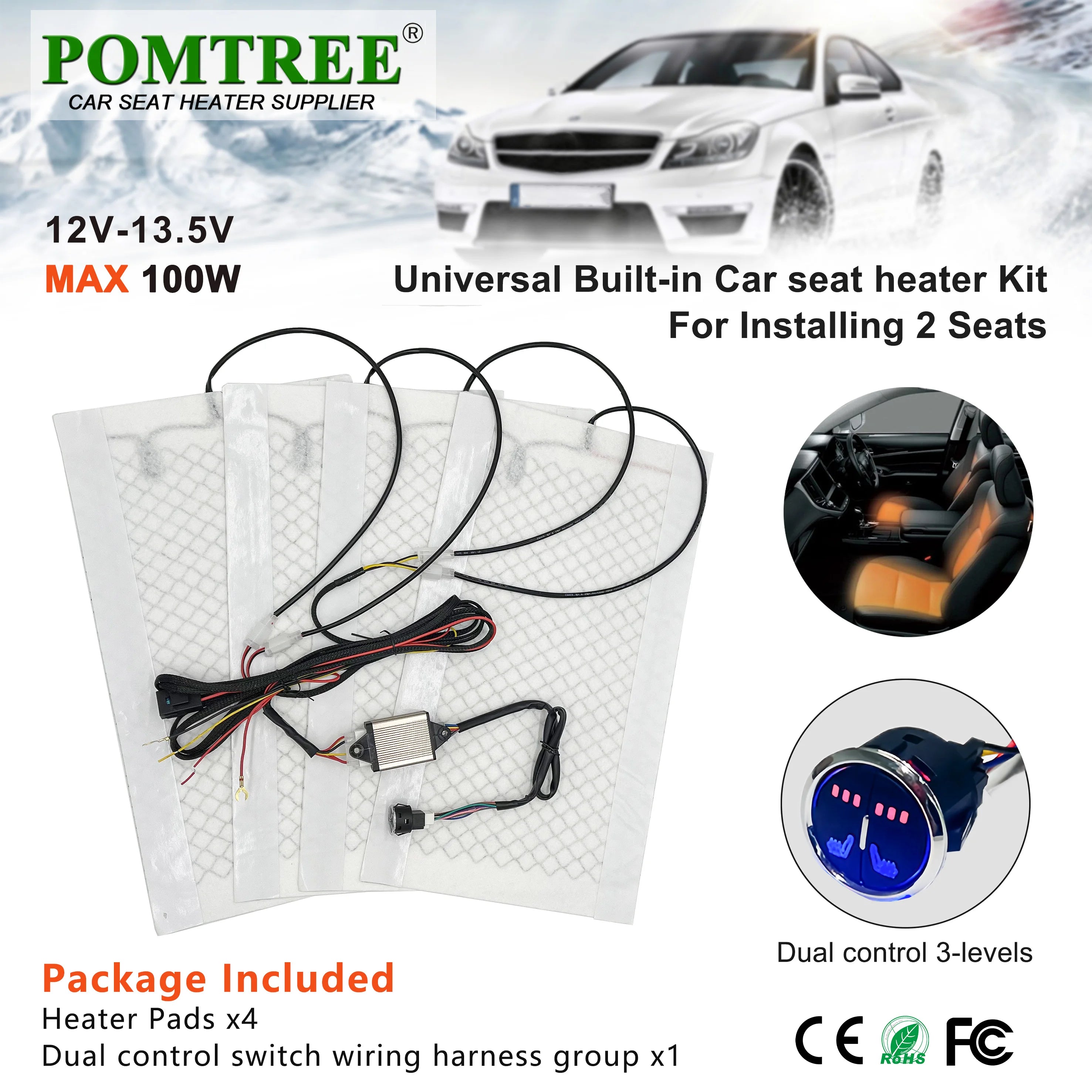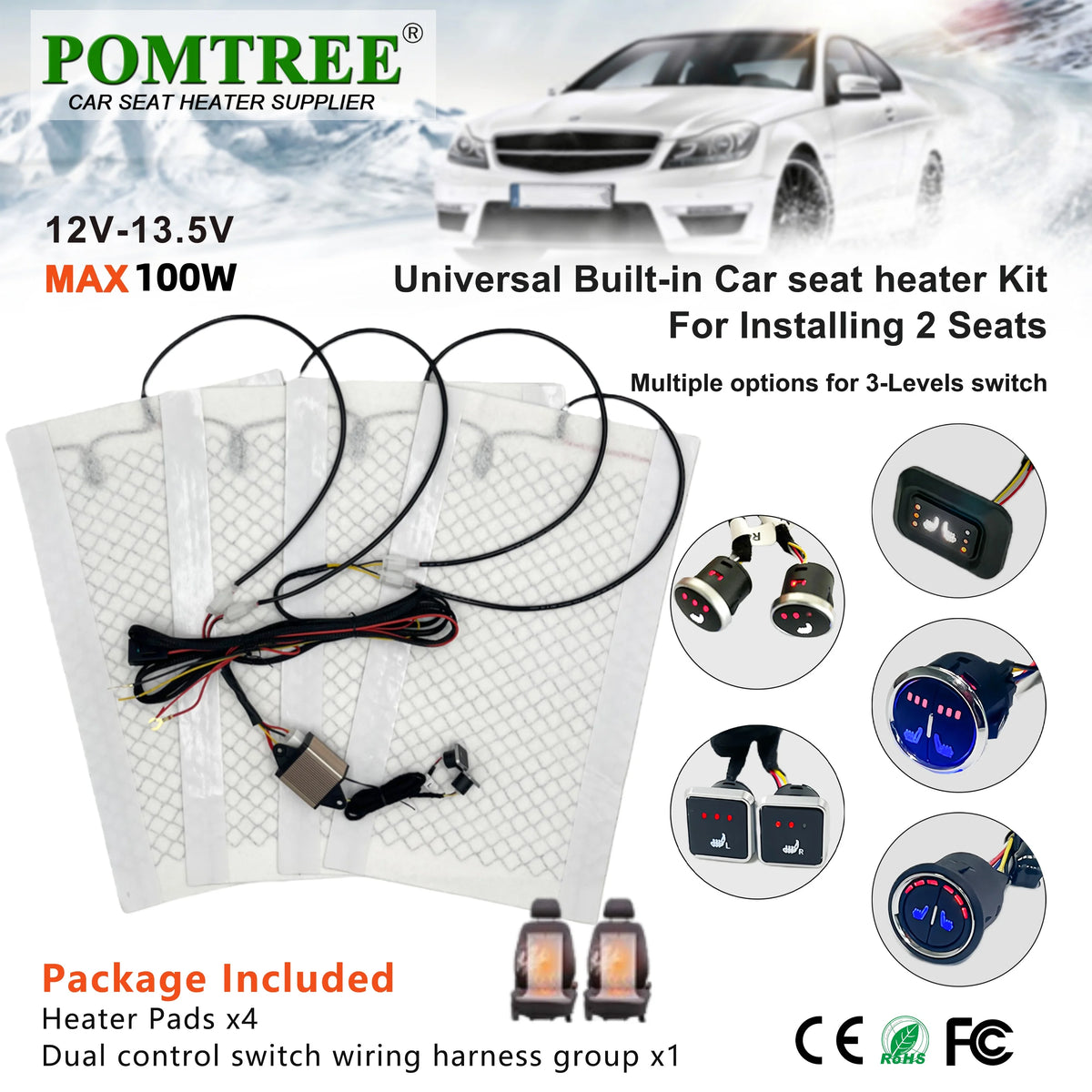Car Seat Heater Kit 100W for 2 Seats, 4 Carbon Fiber Heating Pads