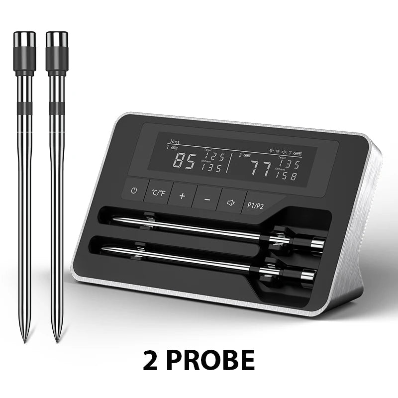 App compatibility and operation are built to suit both beginners and seasoned cooks. The CHEFBBQ app provides seamless wireless data monitoring, while the built-in LCD screen keeps readings visible at a glance.