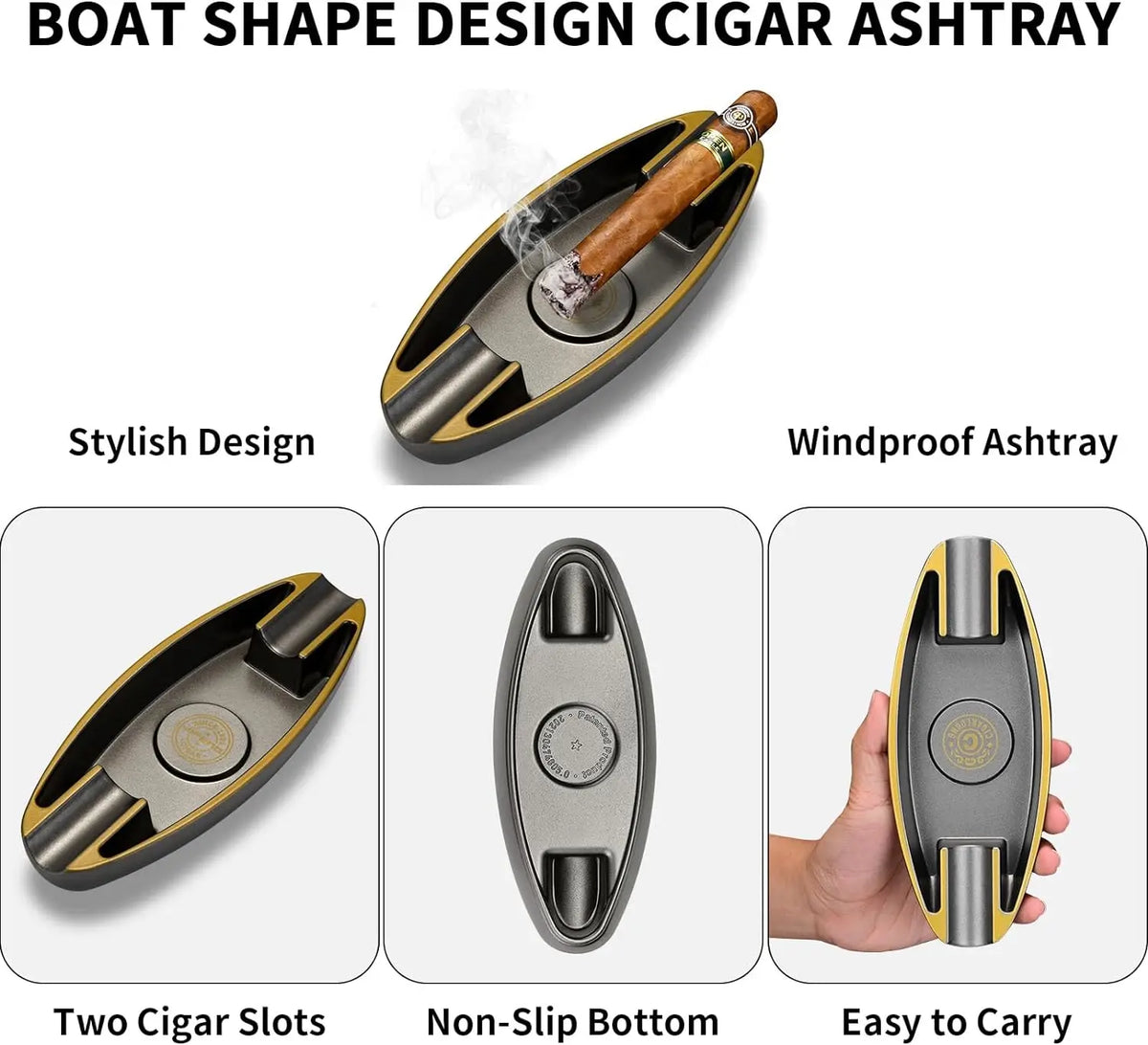 - Name/Model: Monsoon Boat Shaped Cigar Ashtray Dual Slot Portable