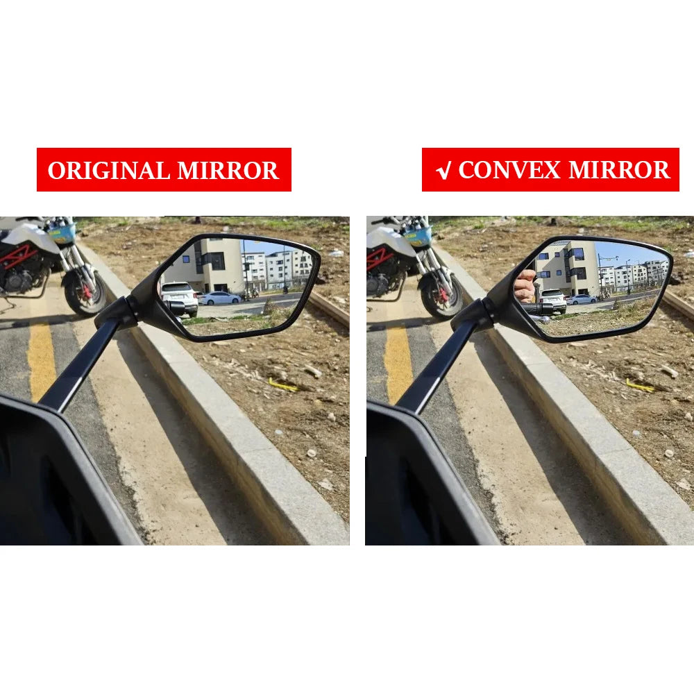 Upgrade your Honda Forza 750 with a high-quality convex rearview mirror glass designed to expand your field of view and boost riding safety. These convex mirror lenses are crafted from premium glass and are intended to fit the original rearview mirrors, offering a simple, do-it-yourself enhancement. After installation, you may notice a slight edge gap and an overall thicker mirror due to the convex design — this is normal and does not affect performance. The convex lens covers approximately 95% of the original lens, providing a significantly wider view while maintaining the familiar mirror shape.