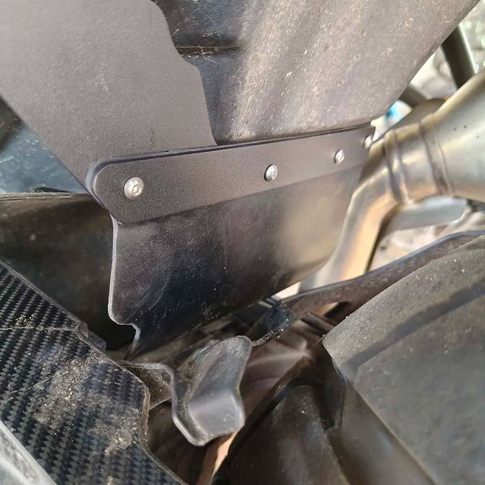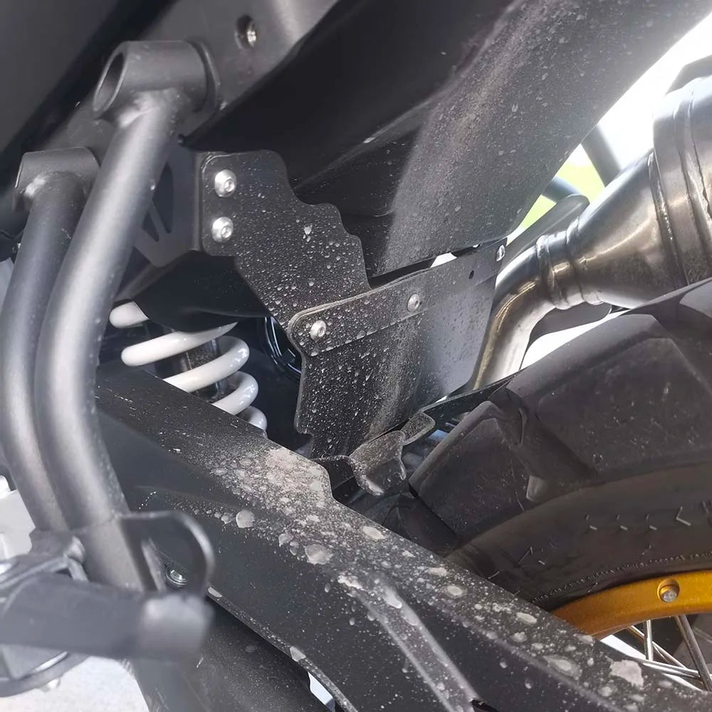 Protect your VOGE Valico 525DSX's rear shock with this dedicated Shockproof Panel Guard. Crafted from carbon steel and rubber, it shields the shock absorber, linkage, and even the back of your legs from dirt, water spray, and road debris kicked up by the rear wheel. Specifically designed for the VOGE Valico 525DSX DSX525, this guard blends rugged protection with a discreet, low-profile look that won't disrupt your bike's sleek styling. It’s 100% brand new and easy to install with no modifications required, arriving with comprehensive fitting instructions and any additional fittings you may need.