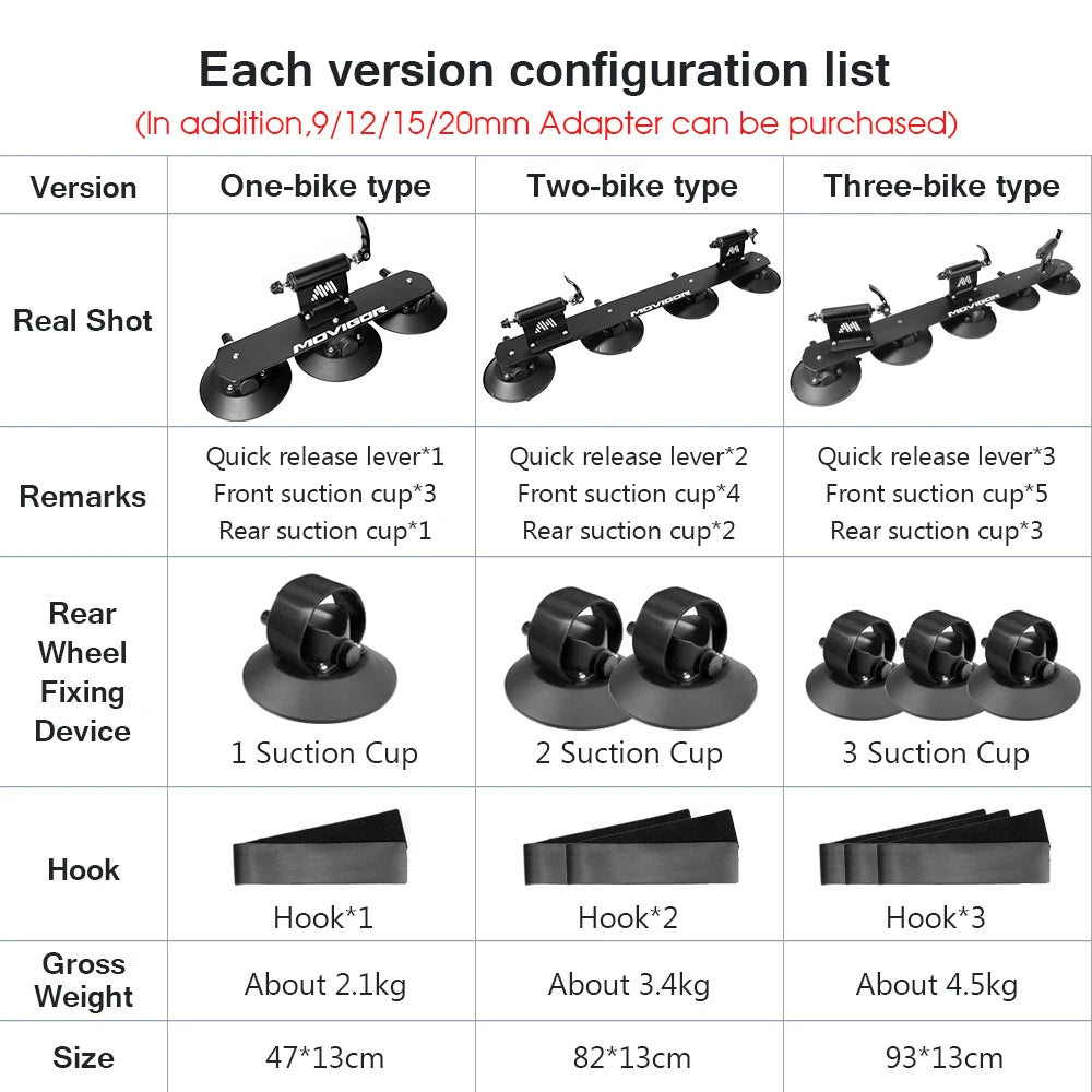 MOVIGOR Suction Roof Bike Rack, Quick Install Aluminum Carrier for Road MTB