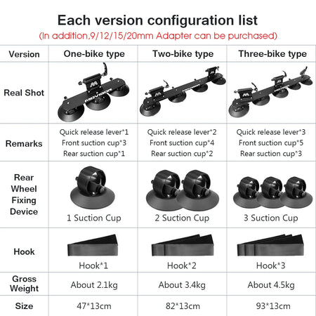 - Versatile fit for road bikes and MTBs with universal compatibility; use optional front fork adaptors if needed for your bike’s axle spacing.