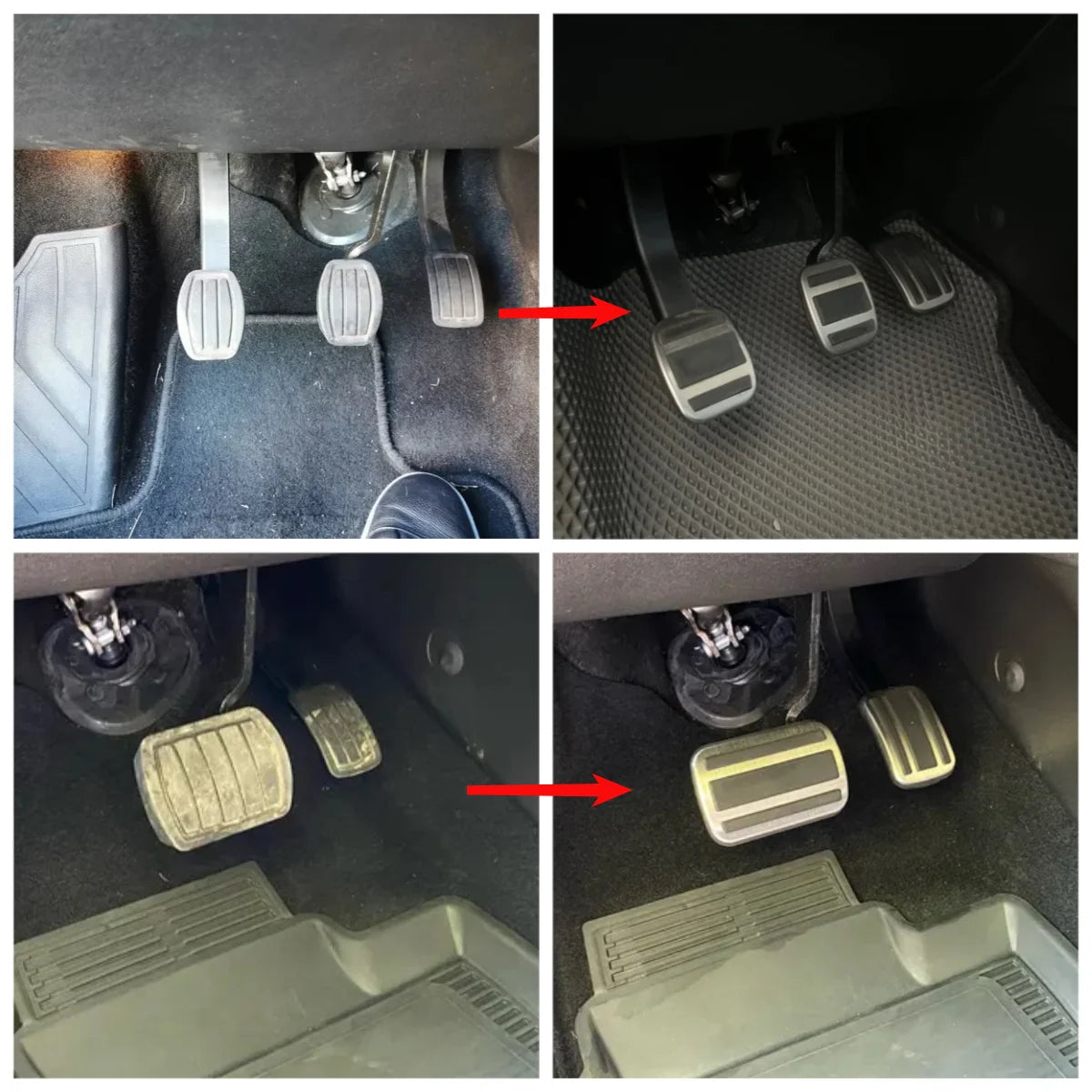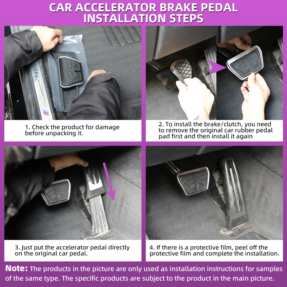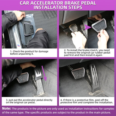 - Installation notes: For brake pedal: tear off the original rubber cover away to fit the product; For gas pedal: it doesn't need to tear off the original rubber pedal, cover the gas pedal directly to fit; For clutch pedal: installation is the same as gas pedal