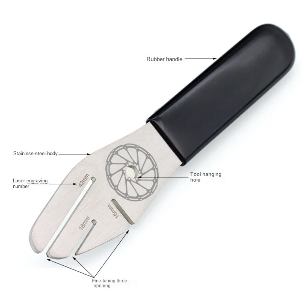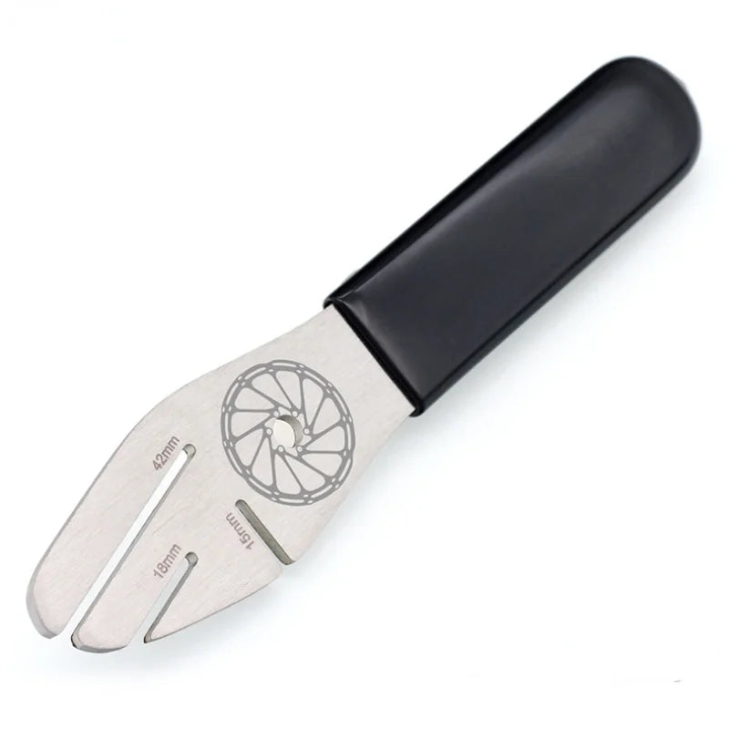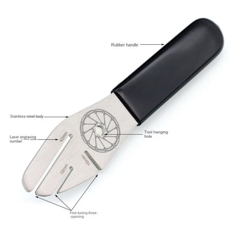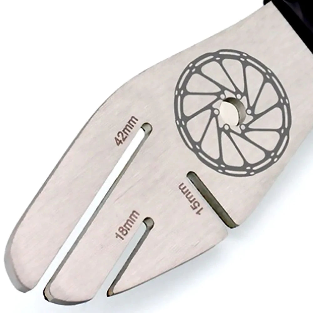 Keep your MTB braking precise with the MTB Disc Rotor Alignment Truing Tool — a durable stainless steel disc correction wrench designed for quick, accurate rotor adjustments on the trail or in the workshop. Its three-opening design (15mm, 18mm, 42mm) comes with laser-marked depth indicators, so you can set, verify, and re-check rotor alignment without guesswork.