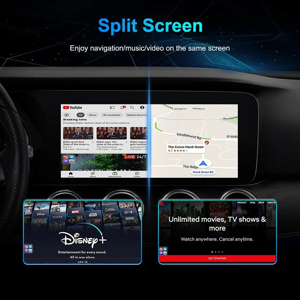 - Turn your car into a smart, connected cockpit: stream music, access navigation, and run apps from Google Play while keeping CarPlay and Android Auto features active.