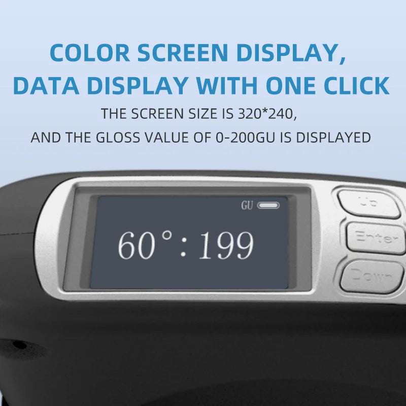 - Fast, reliable gloss checks on any surface: 60° measurement with 0–200 GU range; read results in under a second for quick QC on production lines.