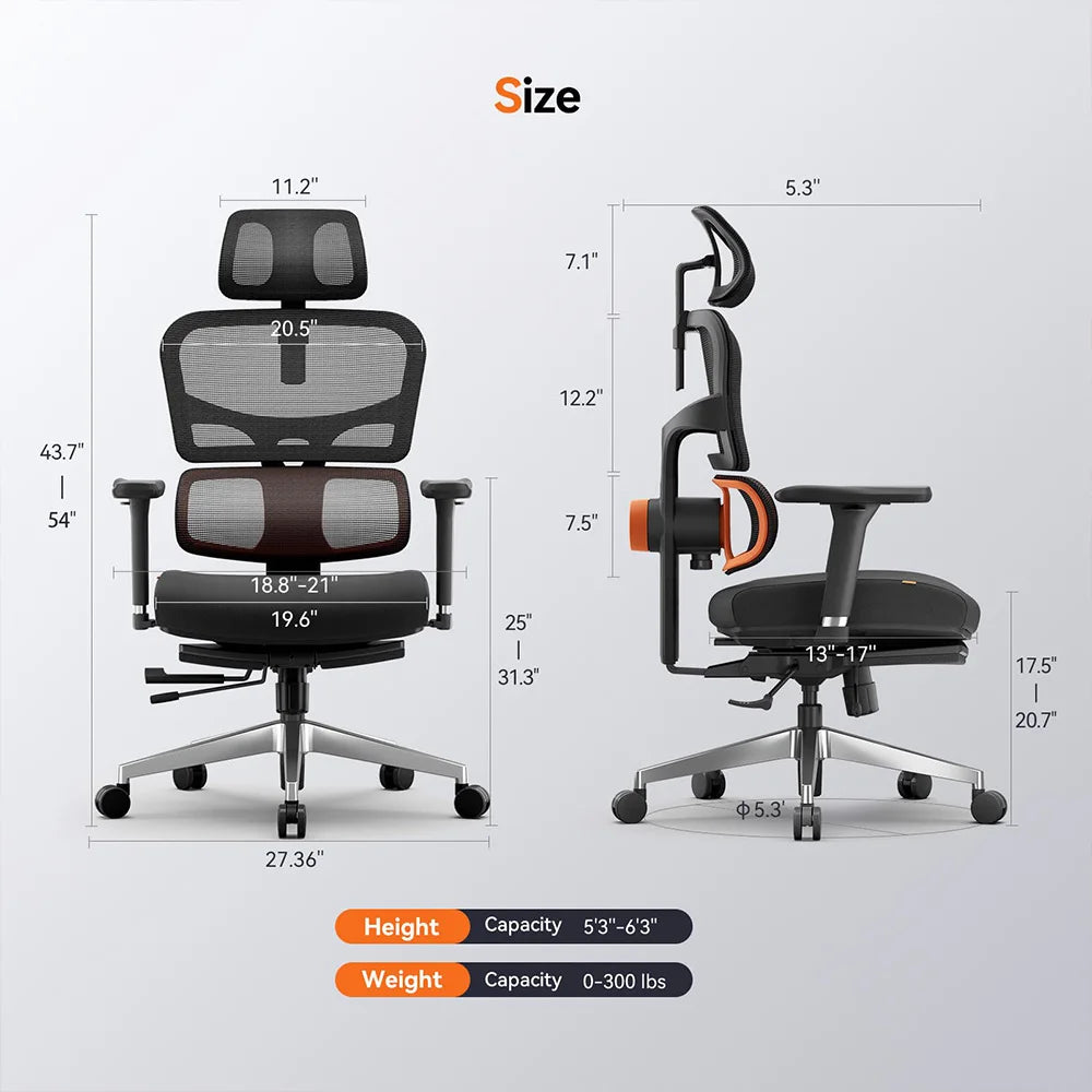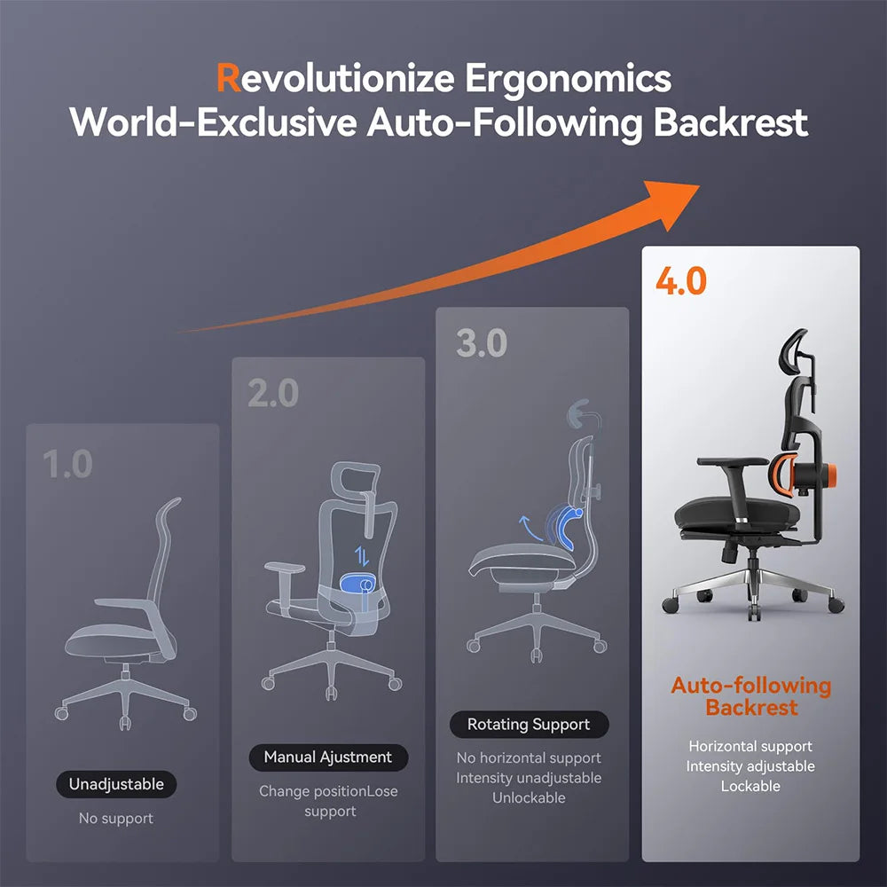 Ergonomic Office Chair with Footrest and Auto-Follow Headrest, 13cm Adjustable Backrest, Korean Filo Mesh