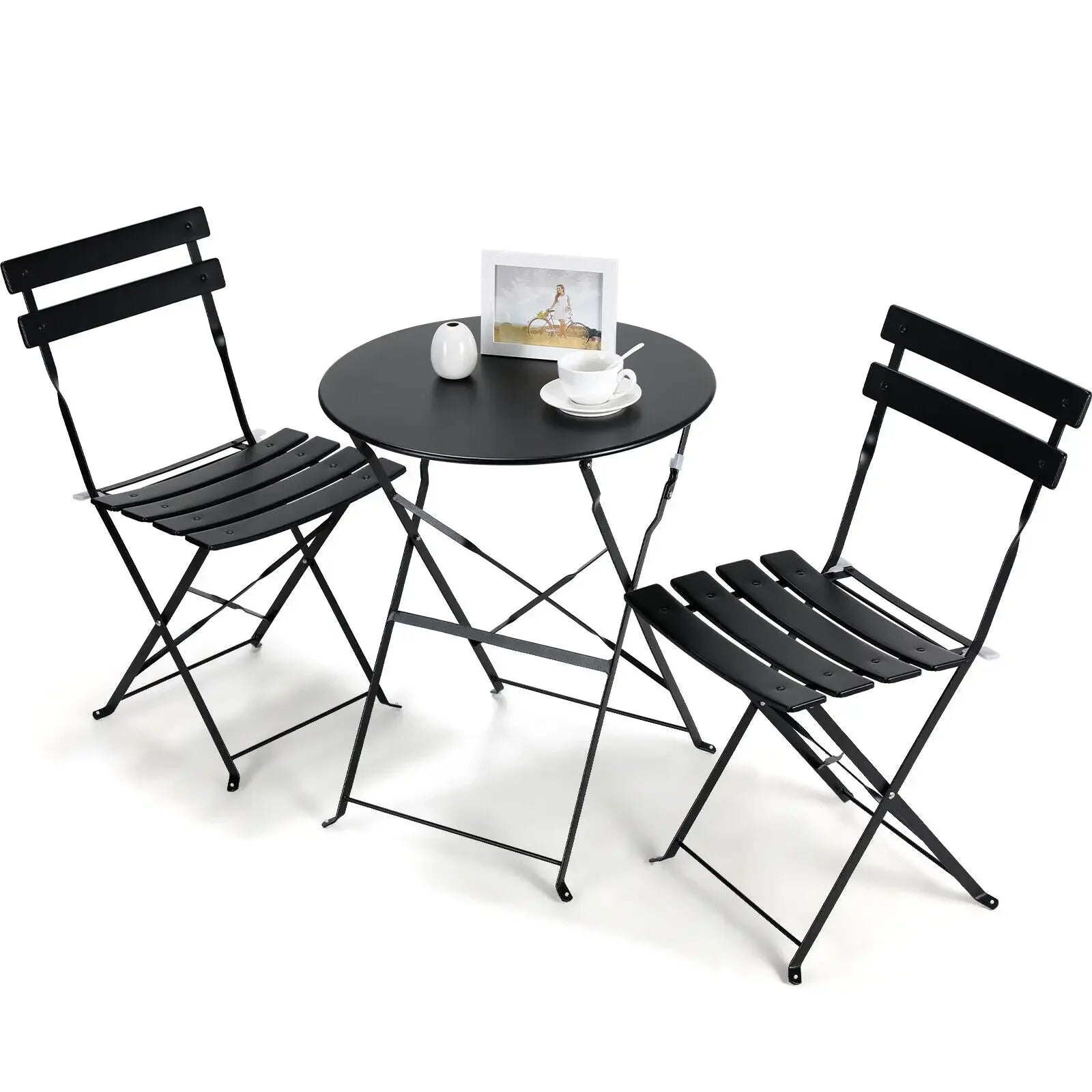 Meet your new outdoor dining companion: the Folding Outdoor Bistro Set, a compact 3-piece iron table and chairs designed for two. Crafted from sturdy iron with a modern, countryside silhouette, this set blends durability and charm for balconies, patios, gardens, or any small outdoor space.