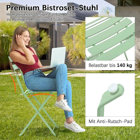 With a weight of 13.6 kg, the set is sturdy yet portable, and the chairs are comfortable for adults and kids alike. The neutral metal finish complements a variety of exterior styles, from modern to rustic patio settings. This 3-piece folding bistro set is ideal for small balconies, gardens, yards, or apartment living where space is precious.