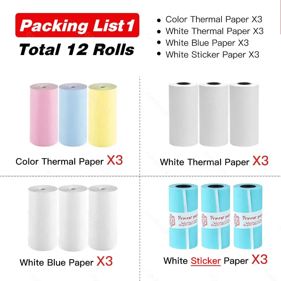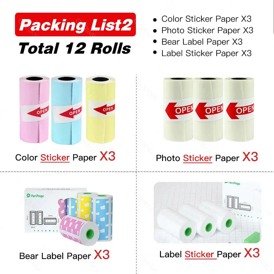 Peripage A6 A8 A2 Paper 58mm Label Sticker Notes Color Photo Printer Adhesive Papers White Receipt Bill Roll Case BPA Free P1 P2