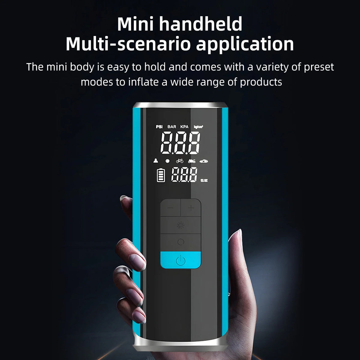 - Versatile inflation buddy: Inflate car tires, motorcycle tires, basketballs, swimming rings, and more with adjustable presets and a wide range of nozzle adapters.