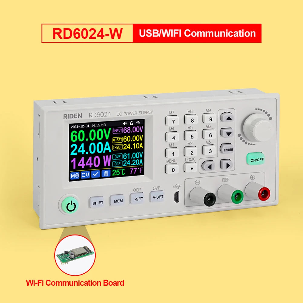 Power your electronics lab with the RD6024 RD6018 DC Voltage Regulator 60V 24A WiFi Bench Supply. This versatile bench power supply delivers precise DC output for testing, prototyping, and development. Choose between RD6024 (up to 24A) and RD6018 (up to 18A) to match your project needs.