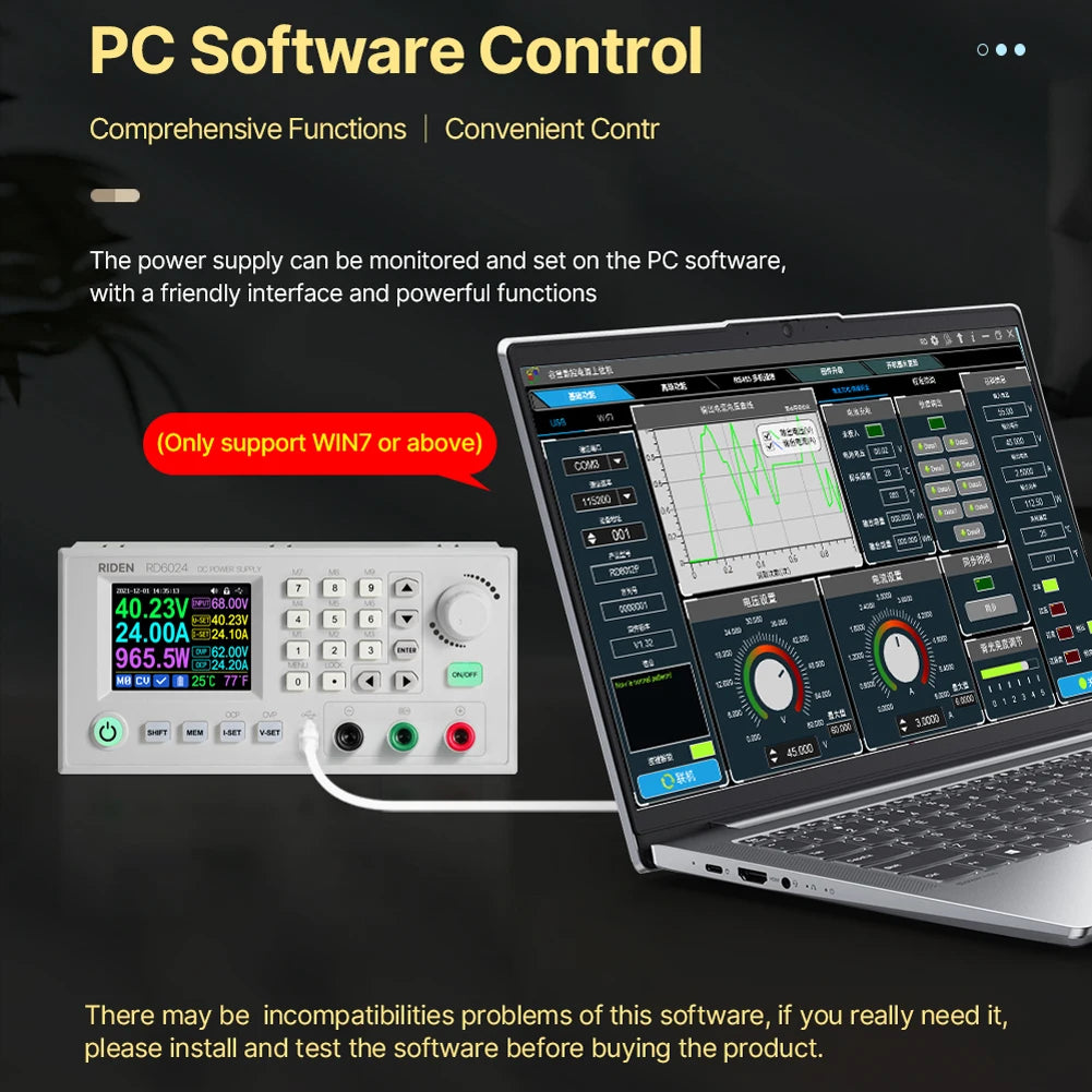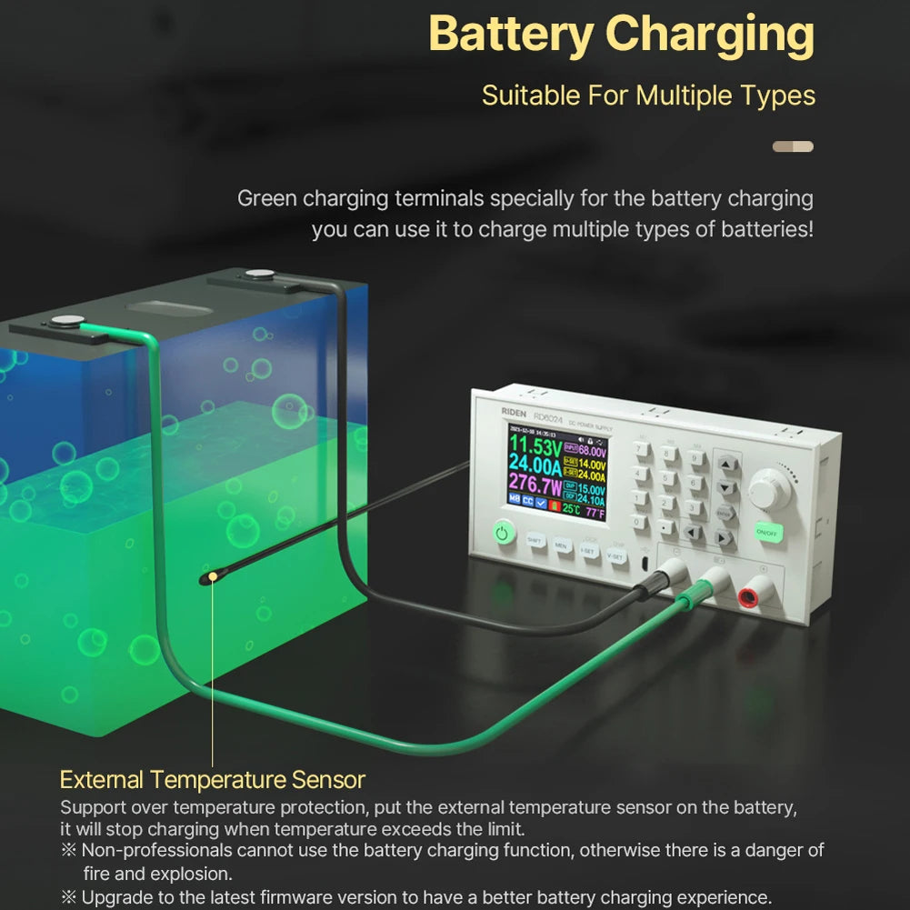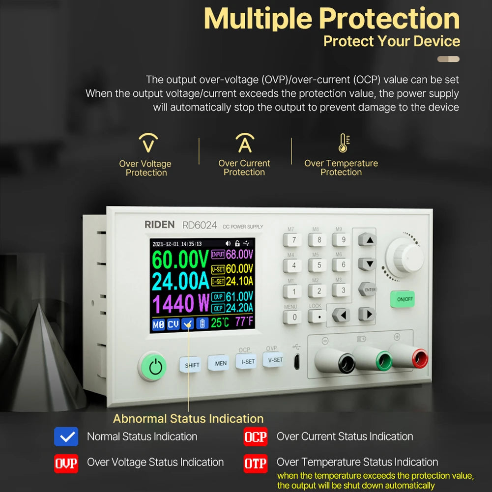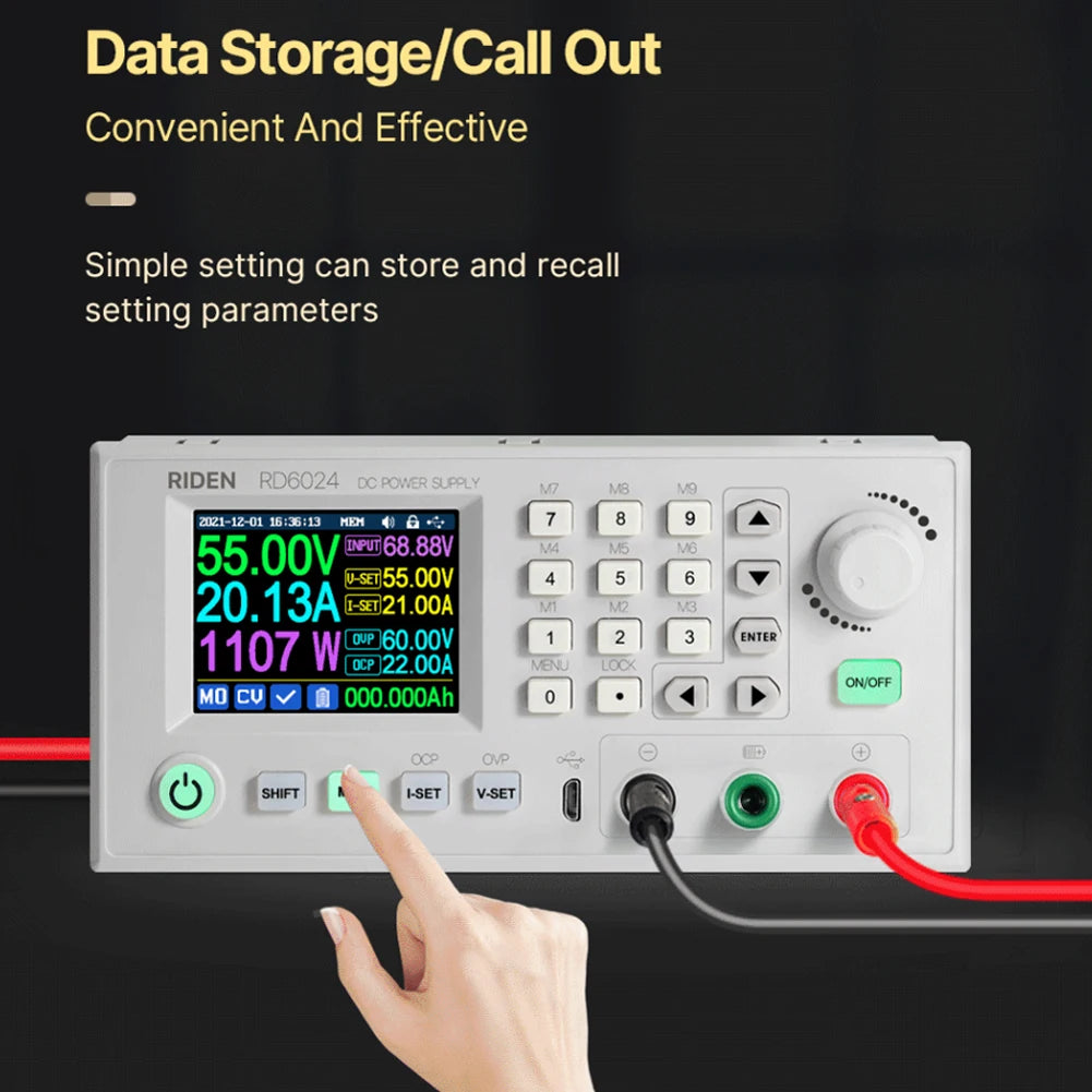 - Precise, adjustable DC output ideal for voltage-sensitive devices and battery testing (0-60V; up to 24A on RD6024 or 0-18A on RD6018).