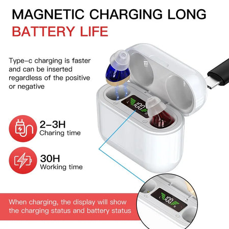 Rechargeable ITE Hearing Aid Digital Display Charging Case