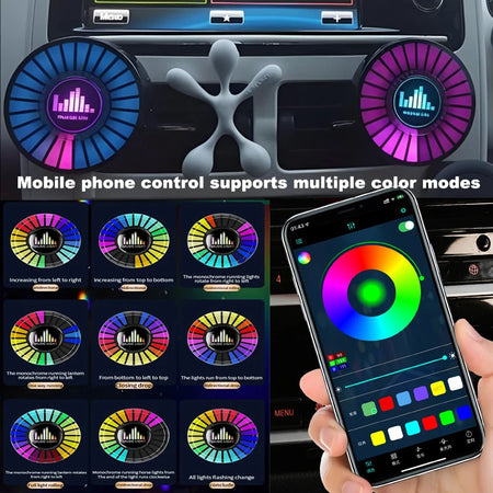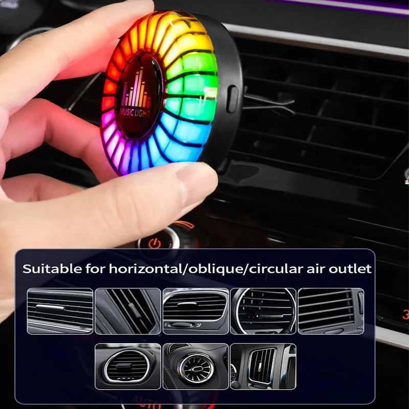 Transform every drive into a multisensory experience with the RGB LED Car Ambient Light with Aromatherapy Fragrance and Music Rhythm App. This compact, rechargeable RGB Music Light clips securely into your car’s air vent and fills the cabin with dynamic color, synchronized music rhythm, and a calming fragrance. Controlled via a dedicated smartphone app, you can fine‑tune colors, brightness, scent strength, and rhythm to match your mood, playlist, or route—whether you’re commuting, road‑tripping, or simply relaxing on a longer drive.