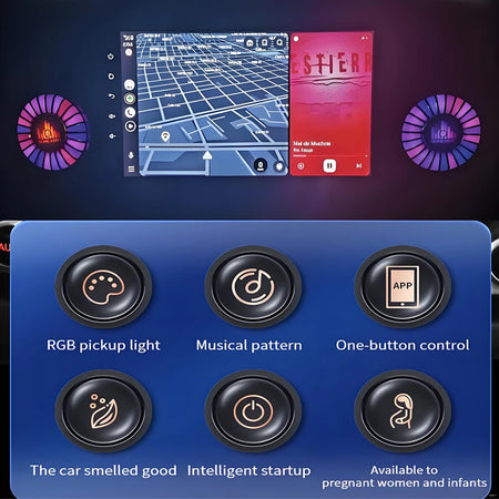 - Customize the scent and brightness to suit the moment—boost focus with crisp blue hues and a light Ocean Breeze aroma during morning drives, or switch to warm tones and Eau de Cologne for evening commutes.