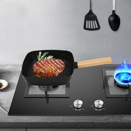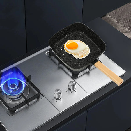 The unique square shape not only adds a contemporary look but also maximizes cooking surface, making it ideal for frying smaller portions or arranging strips, filets, and veggies without crowding. A compound pan base with plural round holes ensures heat is distributed evenly, preventing hotspots and scorching while minimizing lampblack for cleaner, quicker meals. With a non-stick coating that improves both release and heat uniformity, stir-frying and browning become faster and easier than ever.