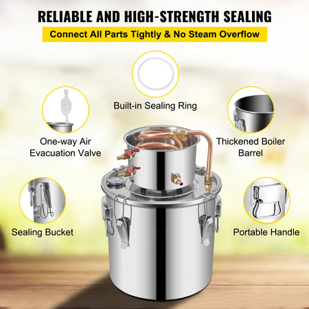 Meet the SucceBuy 3 Gal Moonshine Still Distiller, a robust stainless steel and red copper distillation kit designed for both beginners and experts. This full distiller set delivers excellent cooling performance and a tight, durable seal, making it easy to craft clean distillates from fruit wine, water, brandy, or essential oils. It supports multiple heating methods—from gas stoves to wood fires and electric ceramic heaters—so you can distill wherever you like.