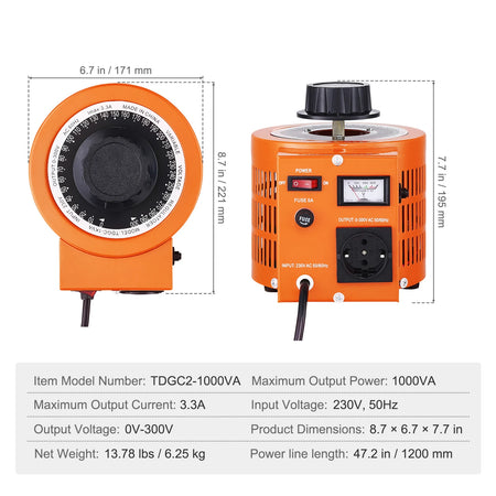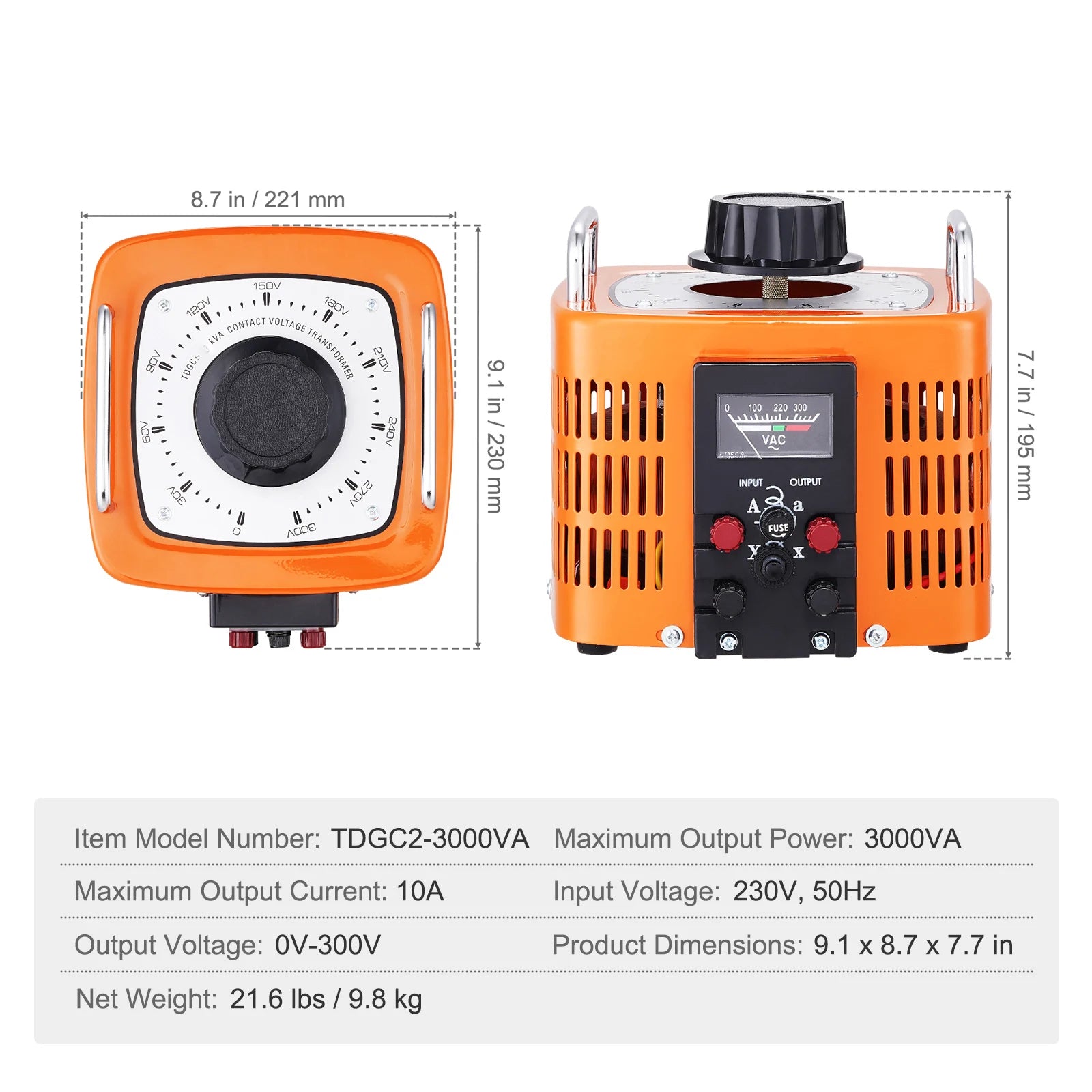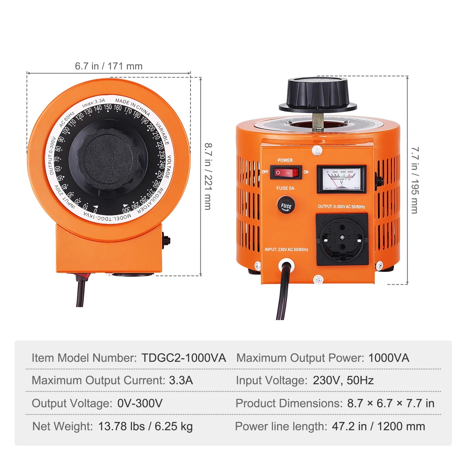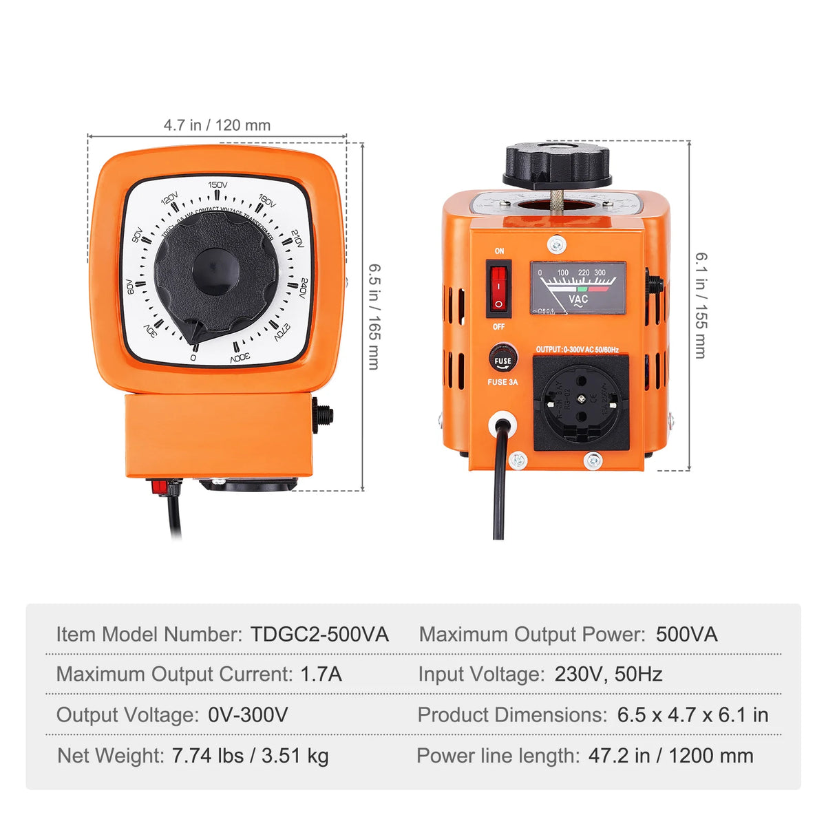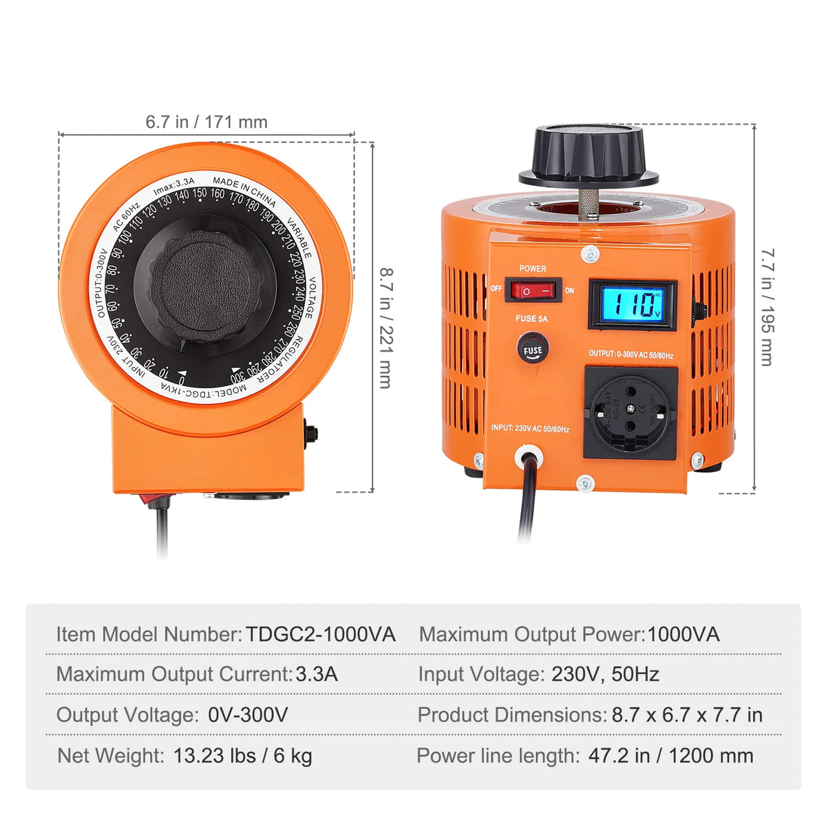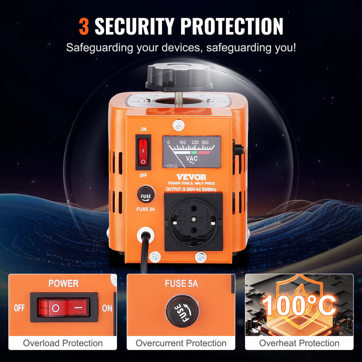 Meet the Variable Transformer 4Fuses, a reliable voltage regulator designed to deliver precise, adjustable power from 0 to 300V. With options from 500VA to 3000VA, this transformer keeps your devices stable, protecting sensitive gear from voltage fluctuations while giving you effortless control over brightness, temperature, and speed. The unit is built for durability with a reinforced metal casing and CE certification, ensuring a sturdy, long-lasting solution for home, office, and light industrial use.