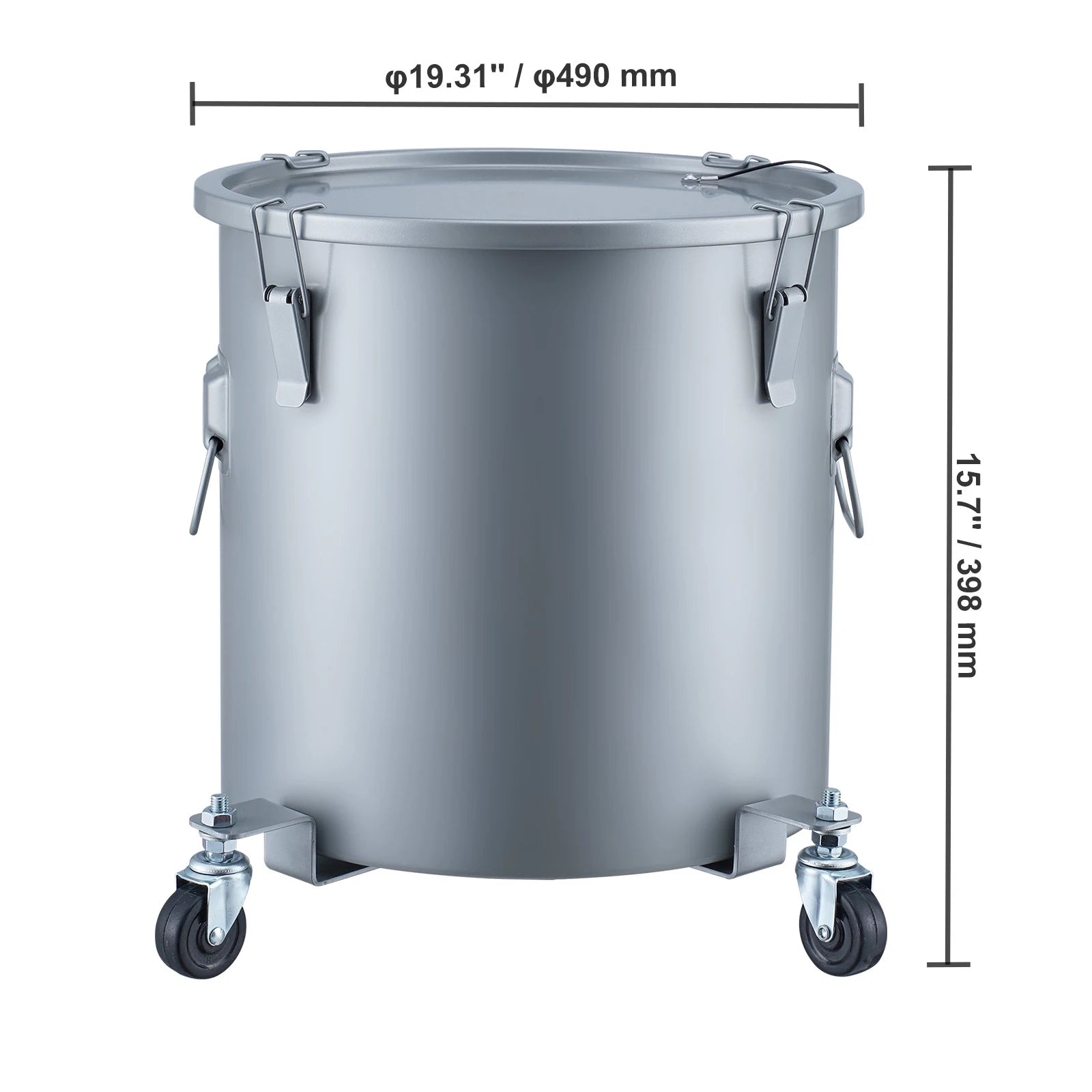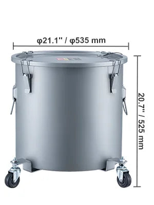 - Secure and mobile: Four quick-locking clips seal the lid, welded bottom prevents leaks, and detachable casters with an ergonomic handle simplify moving and pouring.