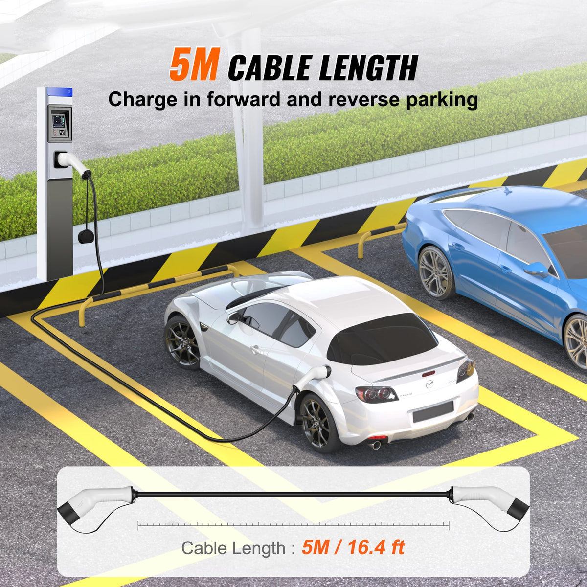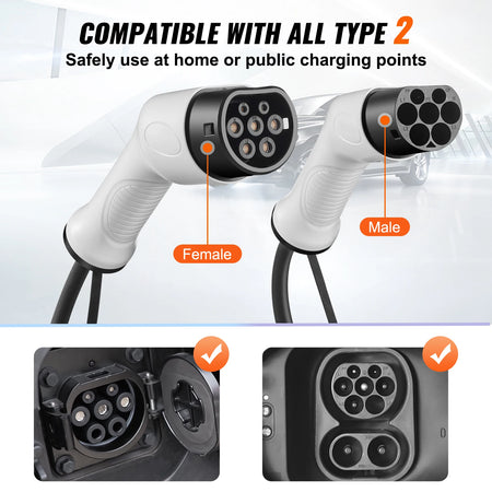- Certified safety and broad compatibility — Type 2 to Type 2 (IEC 62196-2) with CE & TUV dual security certification for peace of mind.