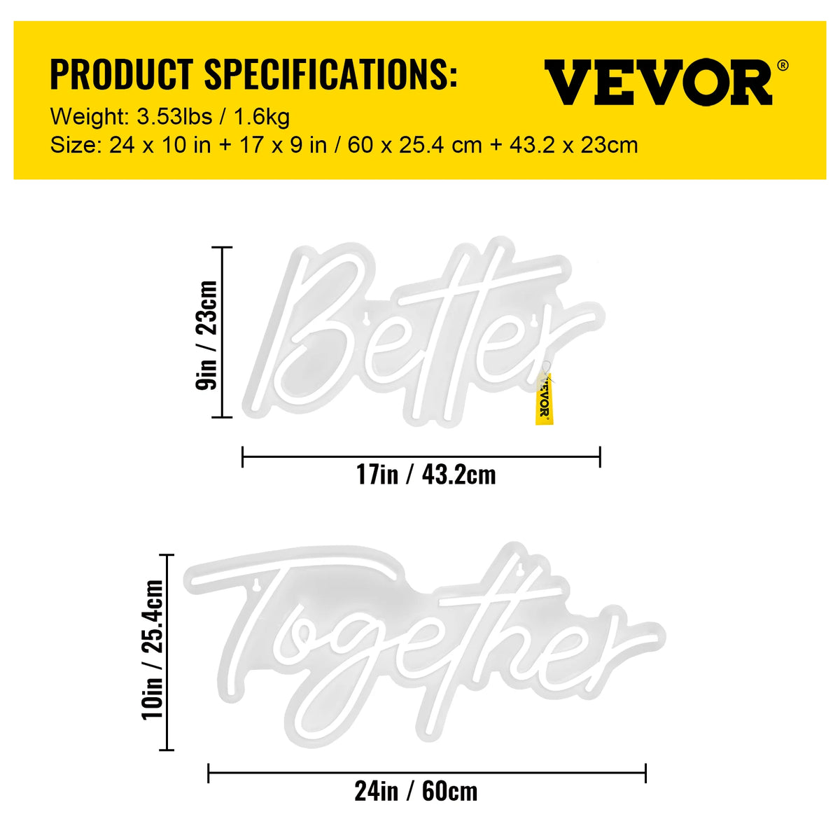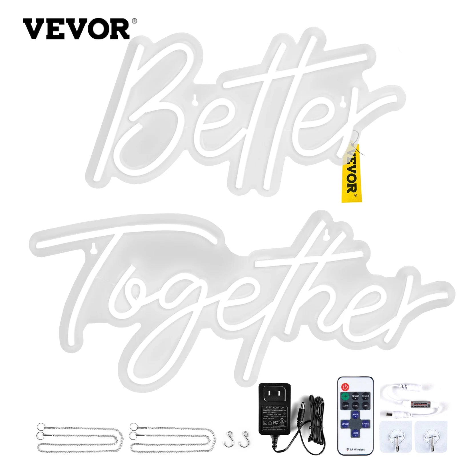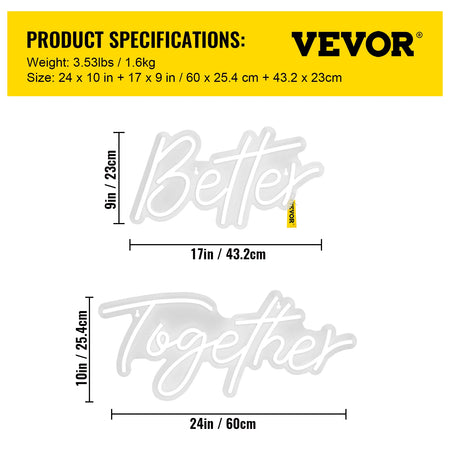 Brighten up any space with the Better Together Neon Sign LED Wall Decor in White. This stylish LED neon display uses durable silicone tubing and a transparent acrylic backboard for a bright, modern glow without the heat of traditional glass neon. Available in two sleek sizes—24" x 10" and 17" x 9"—it’s perfect for weddings, birthdays, bars, cafes, bedrooms, or living areas. The bold “Better Together” word shape adds a friendly, welcoming vibe to photos, gatherings, or cozy nights in.