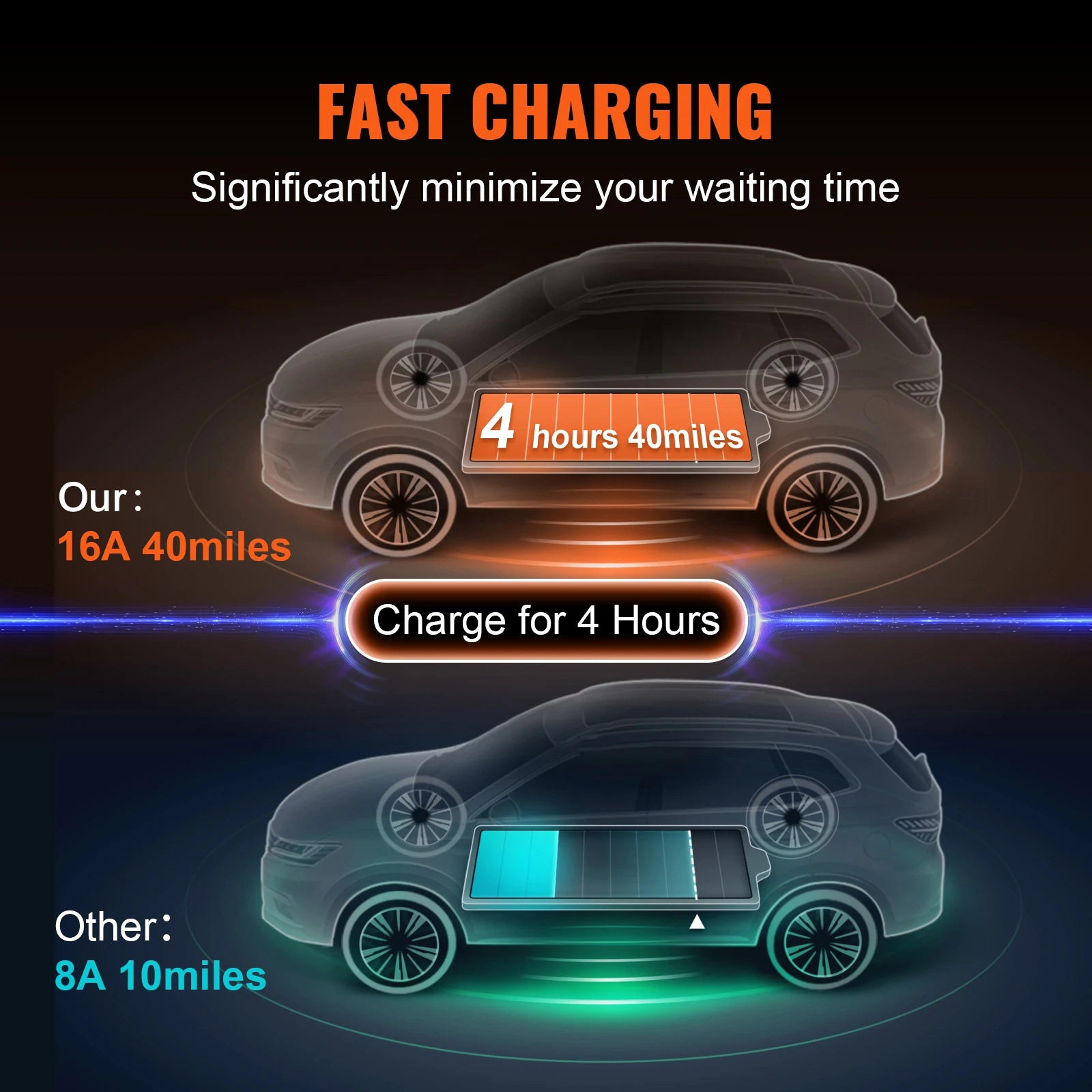 - Use the LCD screen to monitor charging progress at a glance and adjust current in 4 levels to match your needs.