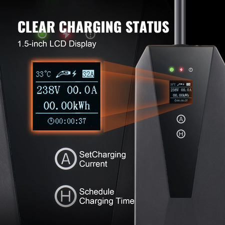 Experience flexible, reliable charging on the go with the Portable Type 2 EV Charger. Designed for compatibility with most electric vehicles that meet IEC 62196 standards, this compact unit delivers up to 16A (3.68 kW) through a robust 25 ft / 7.6 m cable. With an intuitive LCD screen, 4-level current adjustment, and advanced safety protections, you can charge confidently whether you're at home, on a road trip, or camping off the grid.