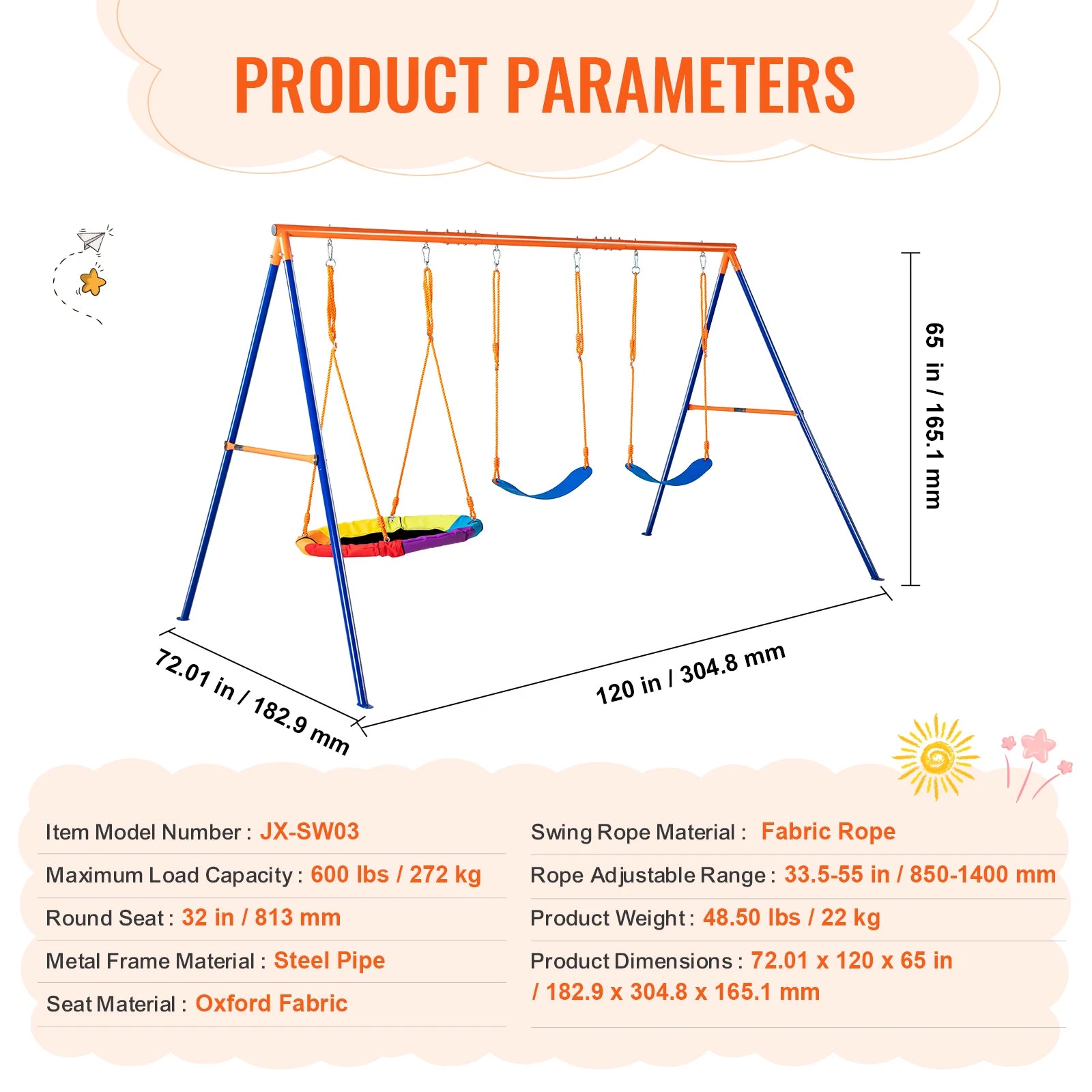Swing Set – 600 Lbs Capacity For Kids Outdoor Fun
