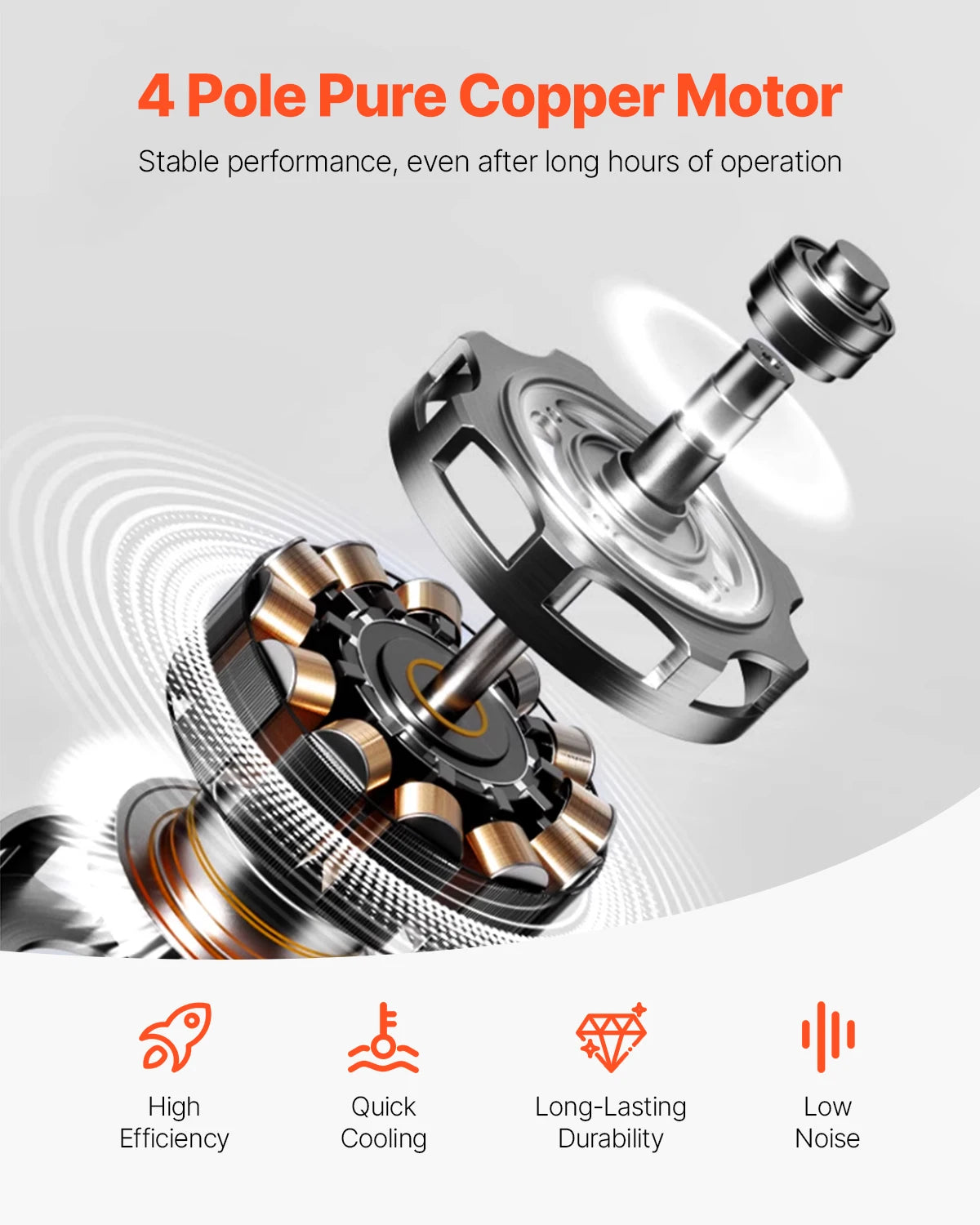Built around a robust pure copper motor, it provides reliable, high-performance suction and stays cool with an integrated cooling system to prevent overheating during extended use. A built-in filtration system minimizes oil mist release, helping maintain a cleaner, safer work environment and better air quality around your job site.