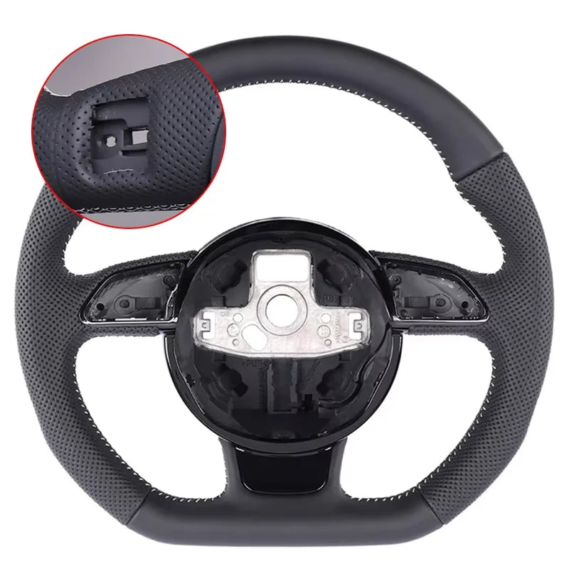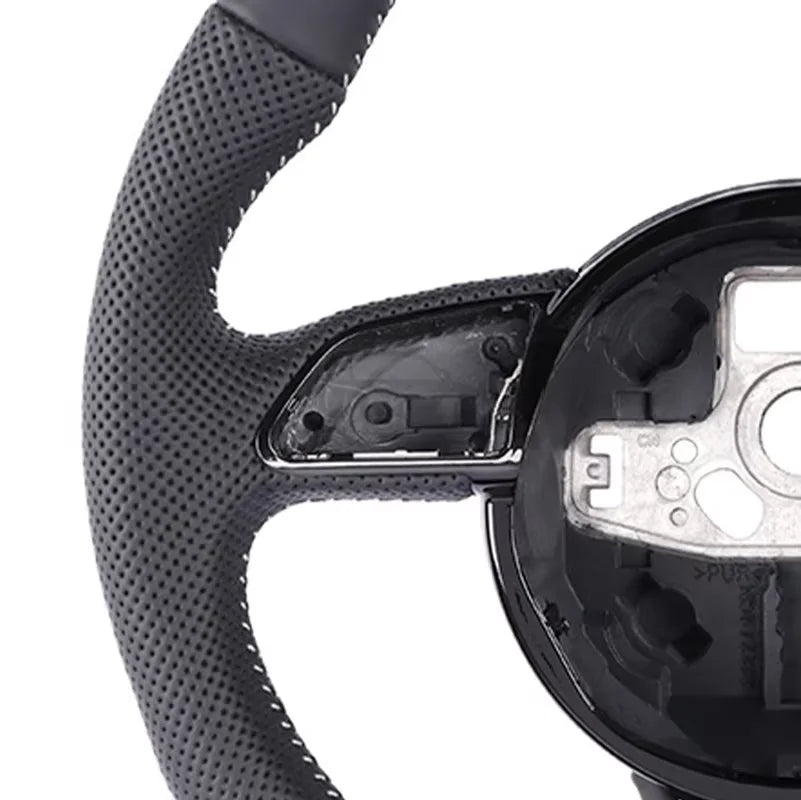Upgrade the cockpit of your Audi with a premium Leather Steering Wheel featuring a Painted Frame, designed to fit Audi A3, A4, A5, Q3, Q5, and SQ5 models. Crafted from high-quality leather and finished with a sleek painted frame, this replacement wheel revives the tactile grip and refined feel of your driving experience while maintaining familiar OEM proportions for seamless installation. It’s the perfect blend of comfort, control, and style for drivers who want to elevate their interior without compromising driving dynamics.