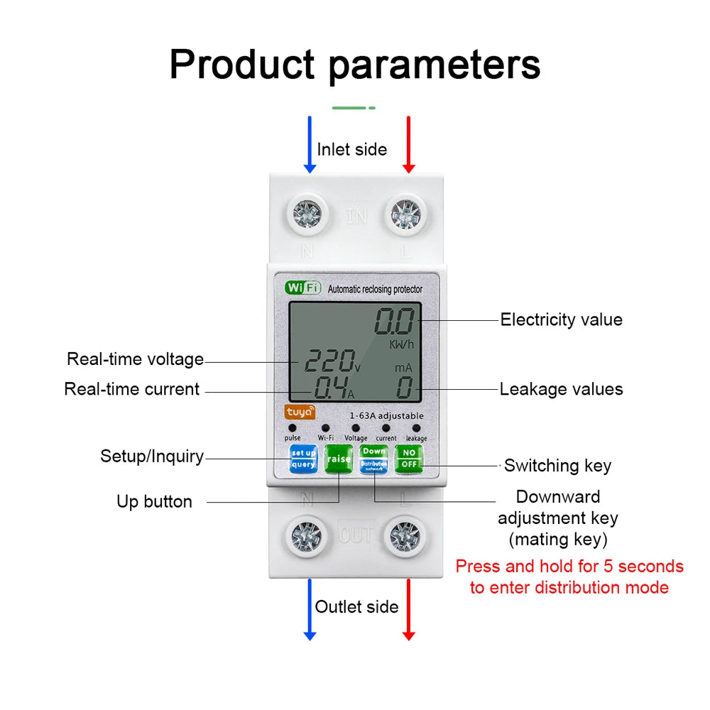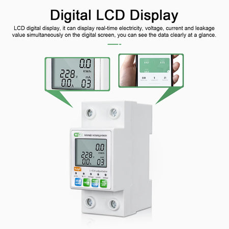 Meet the Tuya WiFi Smart Power Meter With Reclosing Protection LCD by KKMOON — a compact, intelligent solution designed to guard your home and equipment from electrical faults while giving you real-time visibility and control.
