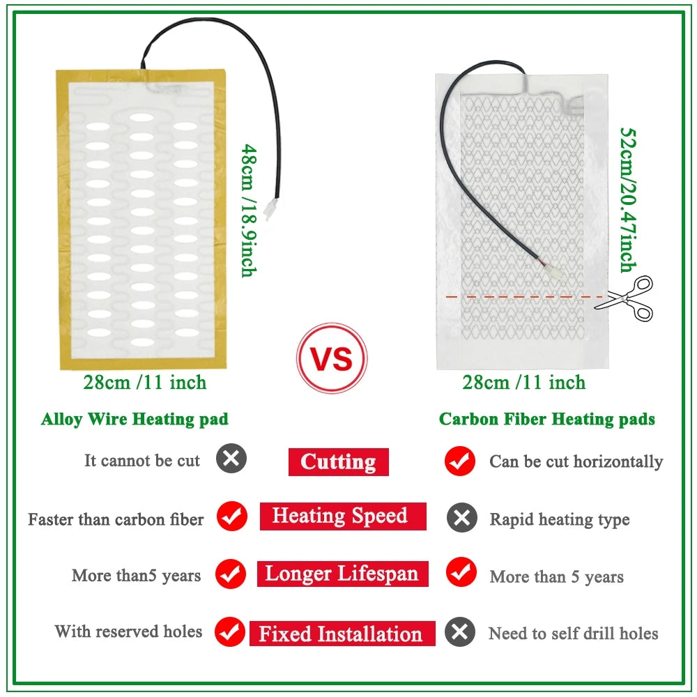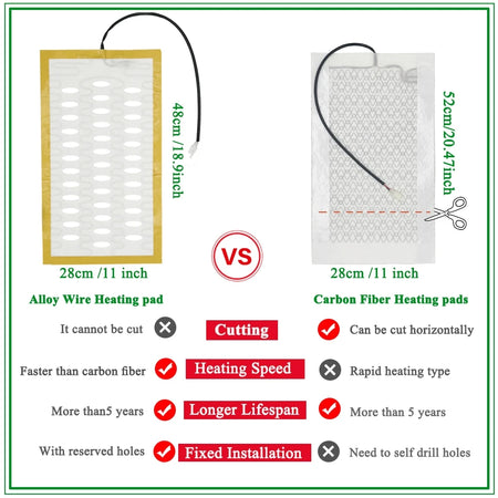 - Pad materials: Carbon Fiber Heating Pad and Alloy Wire Heating Pad