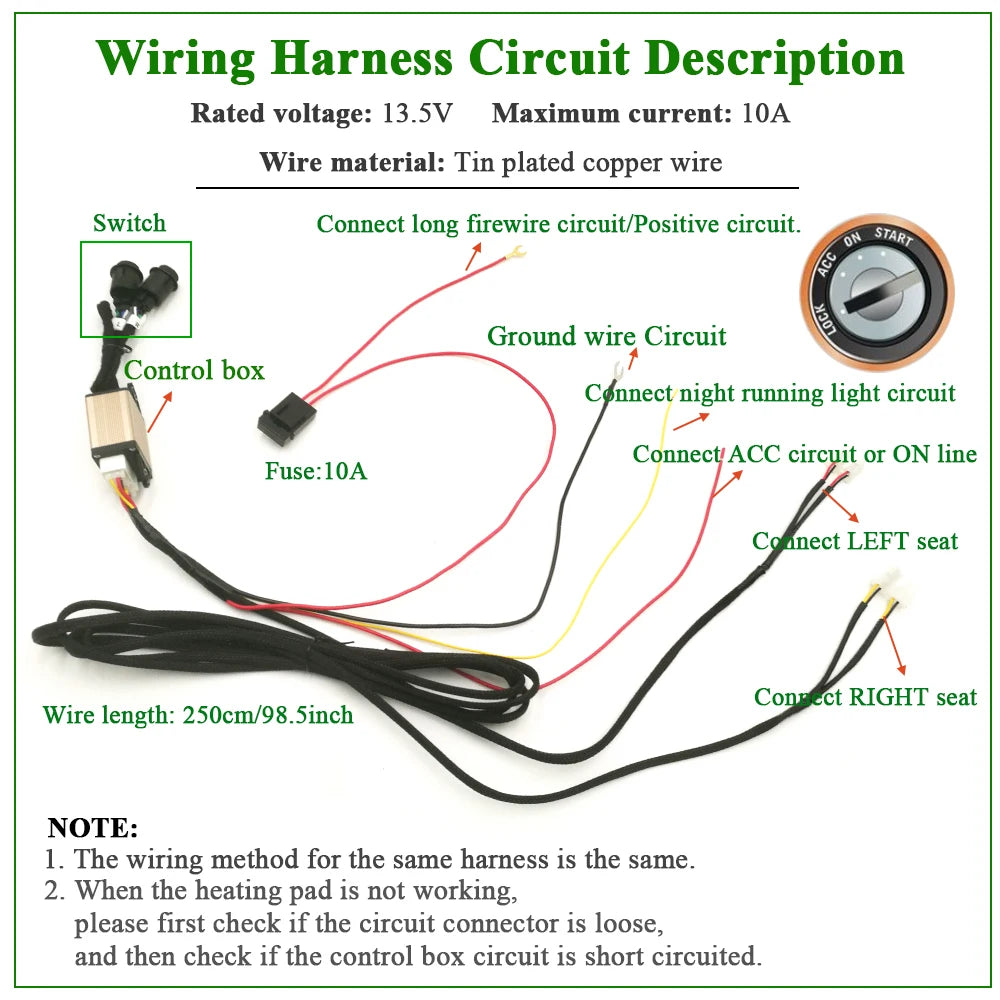 - Working environment: Suitable for front and rear bucket and bench seats; universal fit on any 12V DC system.