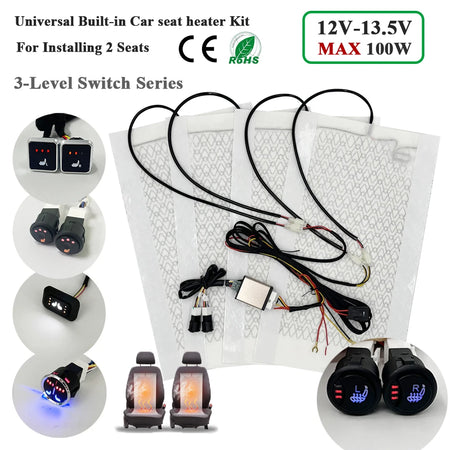 2-Seat Car Seat Heater Kit, 12V 100W Carbon Heating Pads With 3-Level Switch