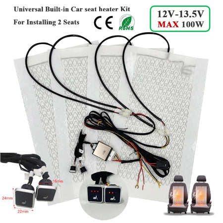 Stay warm on any ride with the 2-Seat Car Seat Heater Kit. Designed for autumn and winter comfort, this universal-fit kit embeds carbon heating pads to deliver steady warmth to front or rear seats in most vehicles. The DC 12V dual-seat control switch lets you tailor warmth for two seats, making chilly trips more comfortable for drivers and passengers alike.