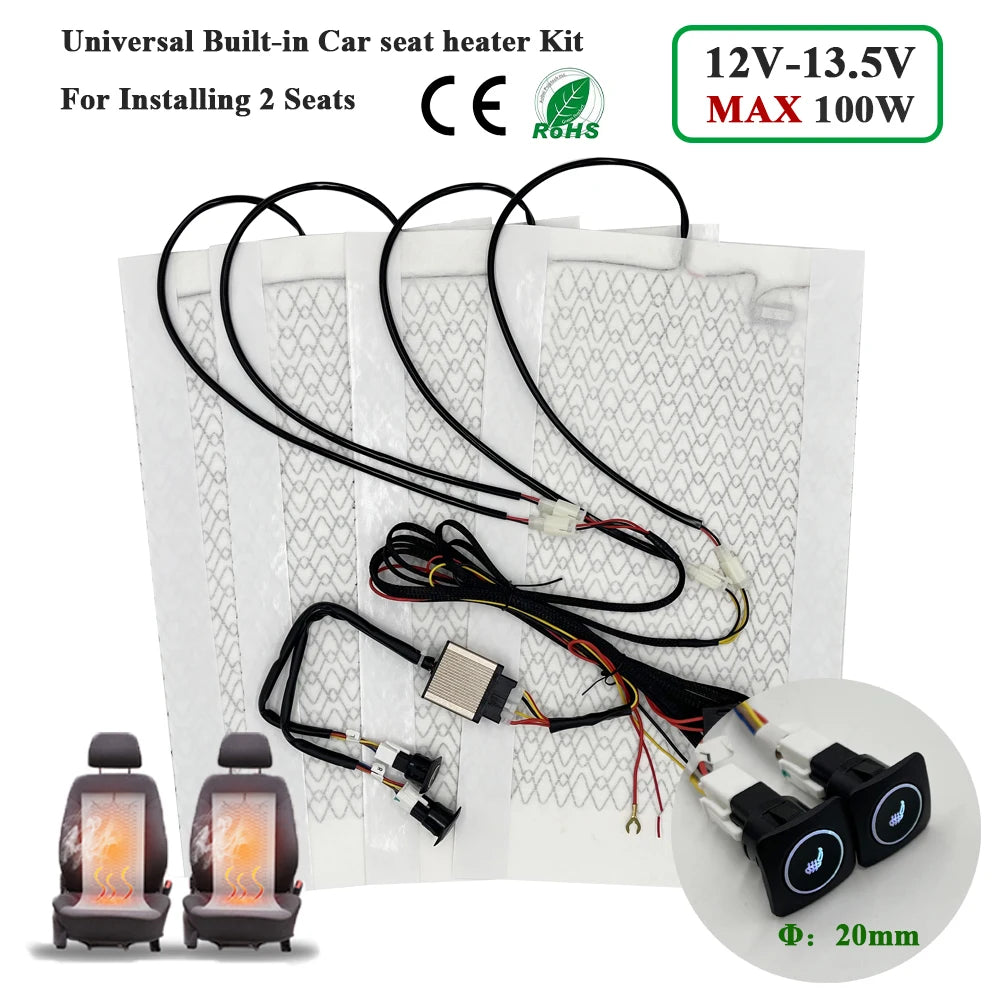 Universal Car Seat Heater Kit For 2 Seats, 12V Carbon Fiber Pads With 3 Levels