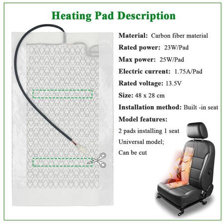 Experience warm, comfortable drives with the Universal Car Seat Heater Kit for 2 Seats. This versatile 12V heating solution is designed to fit virtually any vehicle—from cars and SUVs to trucks, RVs, and even boats—thanks to its universal 12V DC system. The kit includes built-in carbon fiber heating pads for front and rear bucket or bench seats, delivering cozy heat quickly on chilly autumn and winter mornings.
