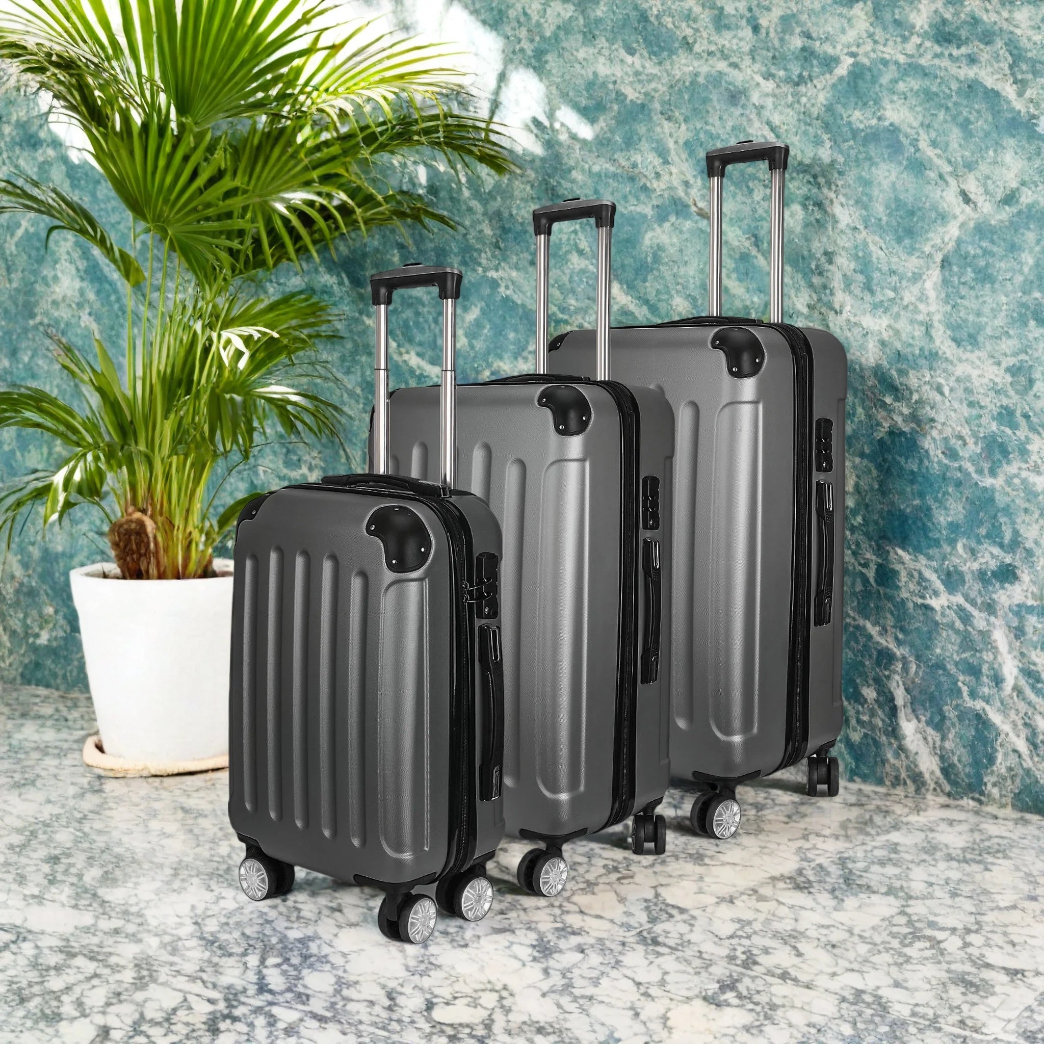 Urban Luxe 3 Piece ABS Luggage Set With Dark Grey Trolley