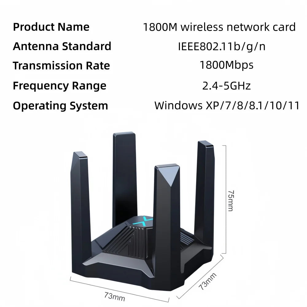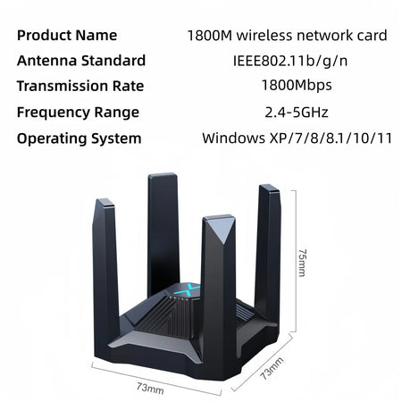 - Maximum Wireless Transmission Rate: 1800 Mbps (2.4 GHz up to 573.5 Mbps, 5 GHz up to 1201 Mbps)