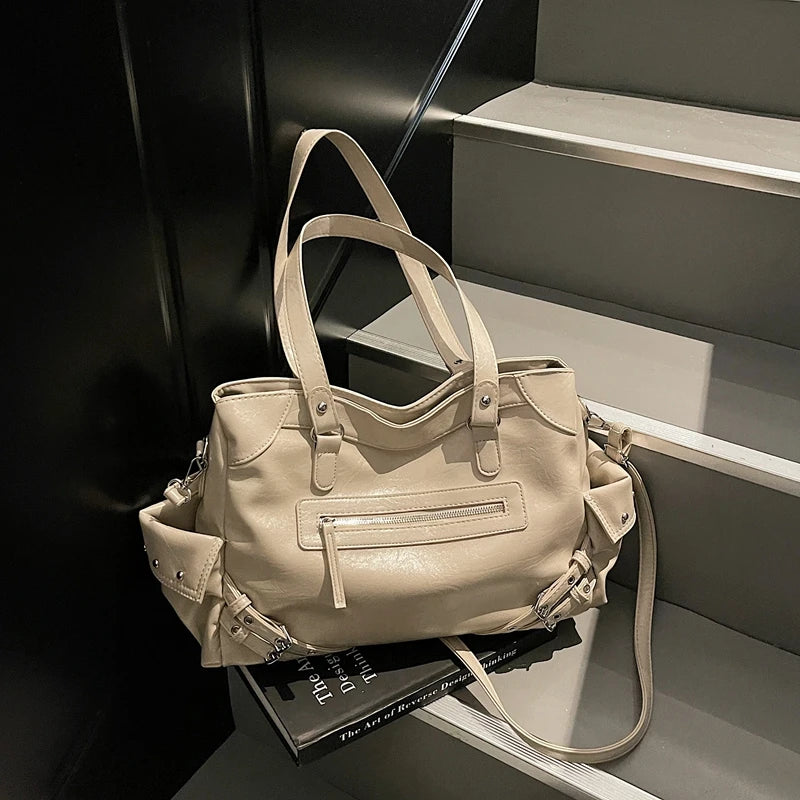 Winter Style Soft PU Leather Tote Bag with Large Capacity for Womens Shoulder Handbag